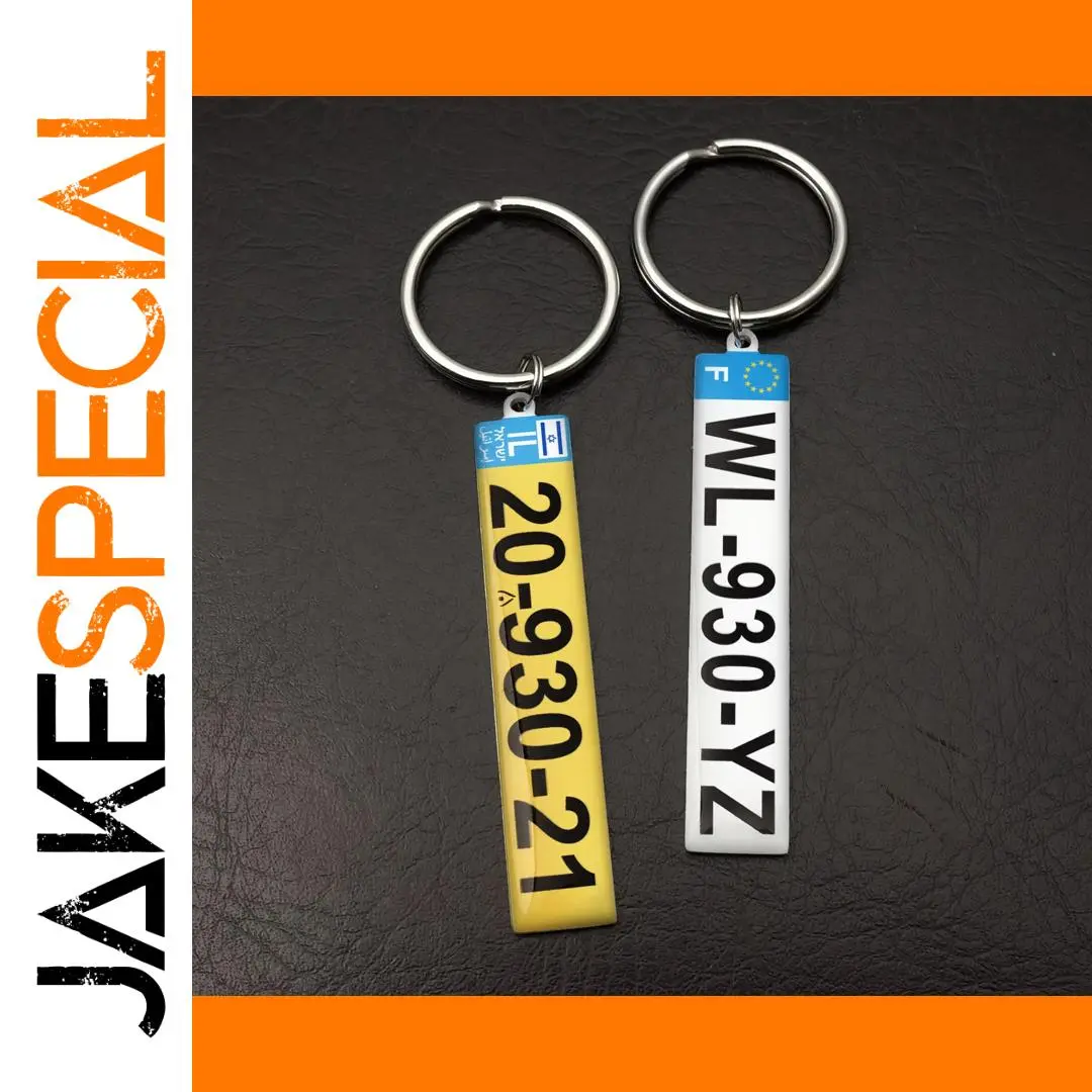 Elevate your style with this Custom Number Plate Keychain, featuring two unique key fobs designed as miniature car number plates. The vibrant yellow fob displays “20-930-21” with a charming emblem, while the sleek white fob showcases “WL-930-YZ,” both beautifully detailed in bold black lettering. Crafted from durable metal, these rectangular fobs are lightweight yet sturdy, attached to a simple silver keyring for a cohesive look. Perfect for everyday use or as a personalized gift, this keychain captures your passion for vehicles and is an excellent way to keep your keys organized while adding a touch of elegance to your collection.