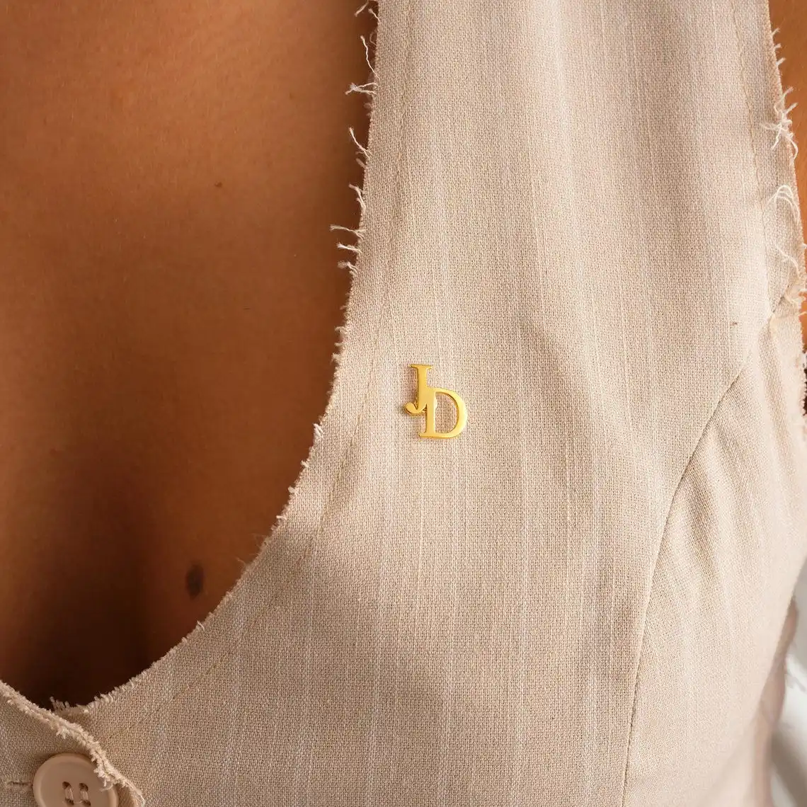Imagine elevating your outfit effortlessly with this beautifully crafted personalized initials brooch. Made from premium stainless steel, it offers lasting durability and a radiant shine, whether in a sleek steel or luxurious real gold finish. Designed to be approximately 20mm wide, it provides just the right size to add a subtle, personalized touch without overpowering your look. The polished, modern metallic badge prominently displays your initials in a stylish serif font, chosen from multiple customizable options. Its minimalist style blends sophistication and practicality, making it ideal for daily wear or special occasions. Whether you're dressing up or down, this versatile accessory guarantees to enhance your style with elegance and personal flair.