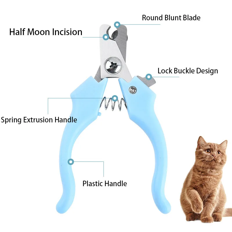 Introducing the Pet Nail Clippers, designed for small to medium-sized pets, measuring 12 cm in length. Crafted from durable stainless steel, these clippers feature a sharp blade with a specialized cutting head to prevent nail splashing during grooming. The ergonomic handle, made from TPE, ensures a comfortable and skid-resistant grip, available in stylish colors: blue, black, and pink. A smooth nail file is included for finishing touches, making these clippers a must-have for efficient pet grooming, ensuring a safe and pleasant experience for both you and your furry companions.