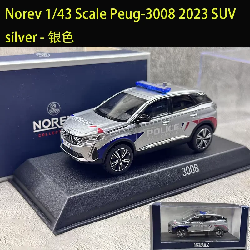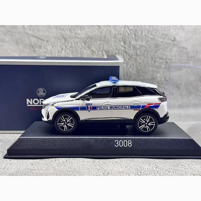 Experience the stunning craftsmanship of this highly detailed 1/43 scale diecast model of the Peugeot 3008 SUV 2023. Crafted from alloy and plastic, this replica showcases a sleek, modern design with aerodynamic contours, sleek lines, and a distinguished front grille. The deep blue, pure white, or metallic silver finishes enhance its realism, complemented by silver trim along the lower sides and alloy multi-spoke wheels. Unique decals, such as a vibrant yellow and red striped emblem on the grille and police markings on the official emergency vehicle variants, add authenticity. The blue roof light bar and detailed LED headlights elevate its commanding and official presence, making it an ideal collectible, display piece, or gift for enthusiasts.