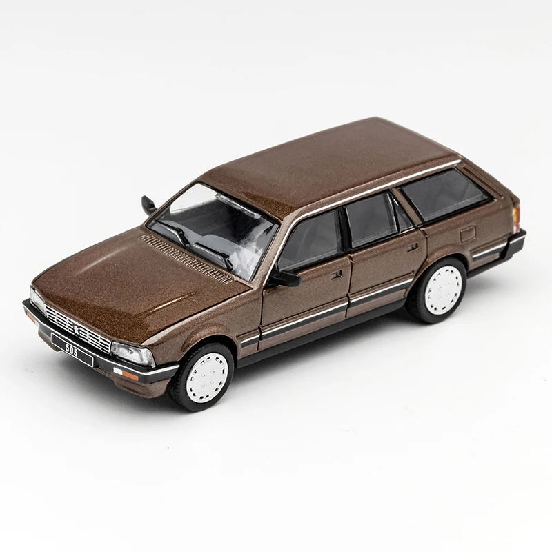 Immerse yourself in the detailed craft of this high-quality 1/64 scale diecast Peugeot 505SW. Perfect for collectors or enthusiasts, this model captures the sleek, classic station wagon design with smooth, glossy metallic surfaces available in six stunning colors: silver, light gray, brown, mint green, light blue, and white. The realistic exterior features include a front grille with horizontal slats, rectangular headlights, and detailed side mirrors, all precisely scaled. Transparent windows reveal intricate interior details, while the proportionate wheels with metallic hubcaps add to its authenticity. Perfect for decoration, gifting, or display, this model brings a touch of nostalgic elegance to any space you're decorating or collecting.