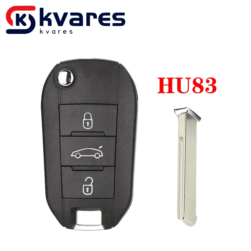 The car flip key remote is sleekly designed for Peugeot and Citroen vehicles, combining a matte black finish with practicality. At just 6cm long, 3cm wide, and 1.5cm high, it fits comfortably in your hand. The 4A HITAG AES chip ensures secure operation at a frequency of 433MHz, while three buttons serve distinct functions: lock, headlights, and trunk release. It's lightweight at 45g and has a sturdy build, featuring a HU83/VA2 key blade, making it a reliable companion for your driving experience. Ensure your key matches the specifications for seamless compatibility and optimal performance.