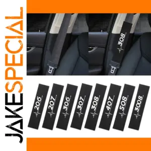 Enhance your Peugeot interior with these two black cotton flannel seat belt covers, measuring 26 cm in length and 6 cm in width, designed for universal compatibility with models including 206, 207, 208, 306, 307, 308, 407, 408, 508, 2008, and 3008. Featuring a sleek, minimalist design with one plain cover and the other adorned with bold white word prints and a heartbeat graphic, these covers add a modern, sporty touch to your driving experience. Crafted from durable cotton and finished with smooth, well-stitched edges, they provide added comfort and style where seat belts cross the body for a refined interior look.