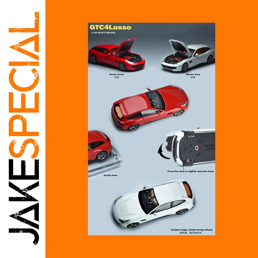 - High-quality diecast metal construction ensures durability and a premium feel for collectors. Its finely detailed exterior authentically replicates the GTC4 Lusso model in 1:64 scale.