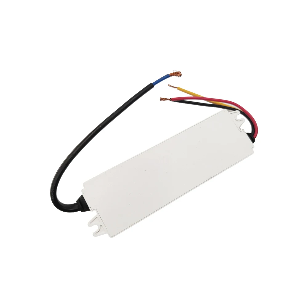 Experience seamless lighting control with this original PDM020E-29VA LED driver, designed specifically for Philips LED control devices. Its sleek, rectangular metal casing in a crisp white finish delivers a minimalist and functional aesthetic, emphasizing durability and efficiency. The smooth edges and sturdy construction ensure reliable performance in professional lighting setups. This driver features a white label with precise technical details, including input voltage (220-240V, 50/60Hz), output ratings (30V, 0.7A; 4.3V, 0.06A), and temperature tolerance (-20°C to +50°C). Its practical design includes three attached wiring cables—black, red, and yellow—stripped at the ends for easy installation. Whether you're upgrading or replacing, this component provides both trustworthiness and technical excellence.