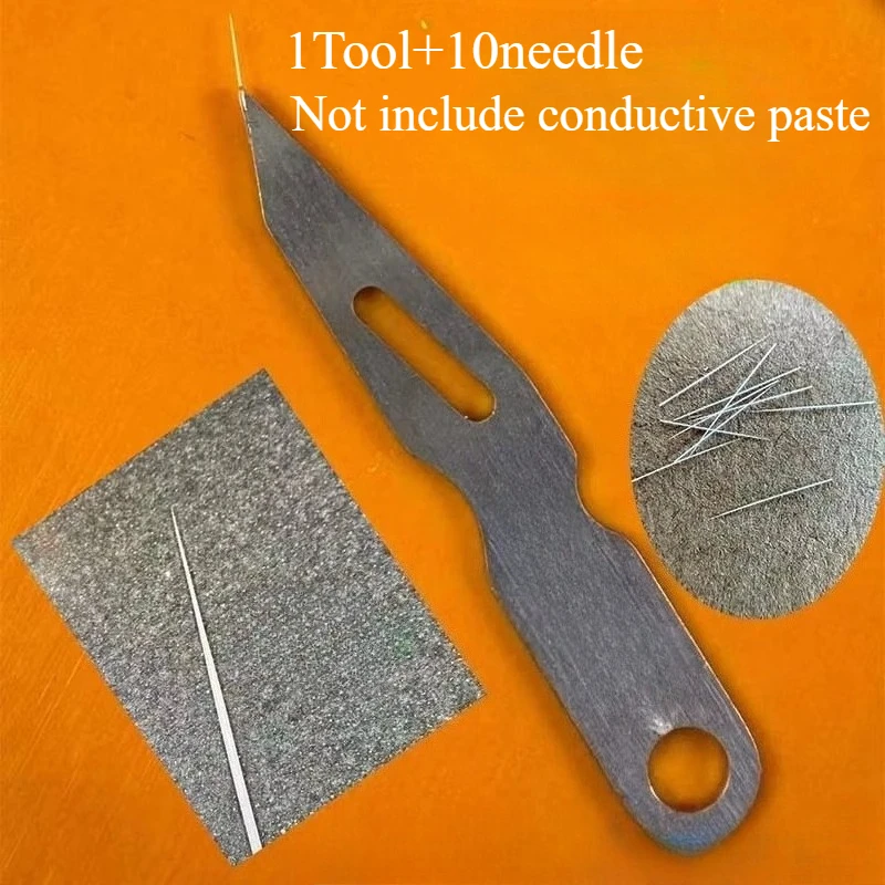 Achieve precise phone screen repairs with this sleek patching tool, featuring a high-quality conductive circuit silver paste ideal for fixing LCD and green screens. The set includes a precision needle applicator for accurate application, ensuring delicate and effective circuit patching. Crafted from durable, non-conductive materials with a clean, minimalist design, the tool is perfect for detailed repair work on mobile screens. Its simple, professional aesthetic emphasizes functionality, with a matte black spatula and transparent needle tip, complemented by a collection of fine metallic pins that reflect light with metallic sophistication. This essential repair kit will help you restore your device’s display with confidence and precision.