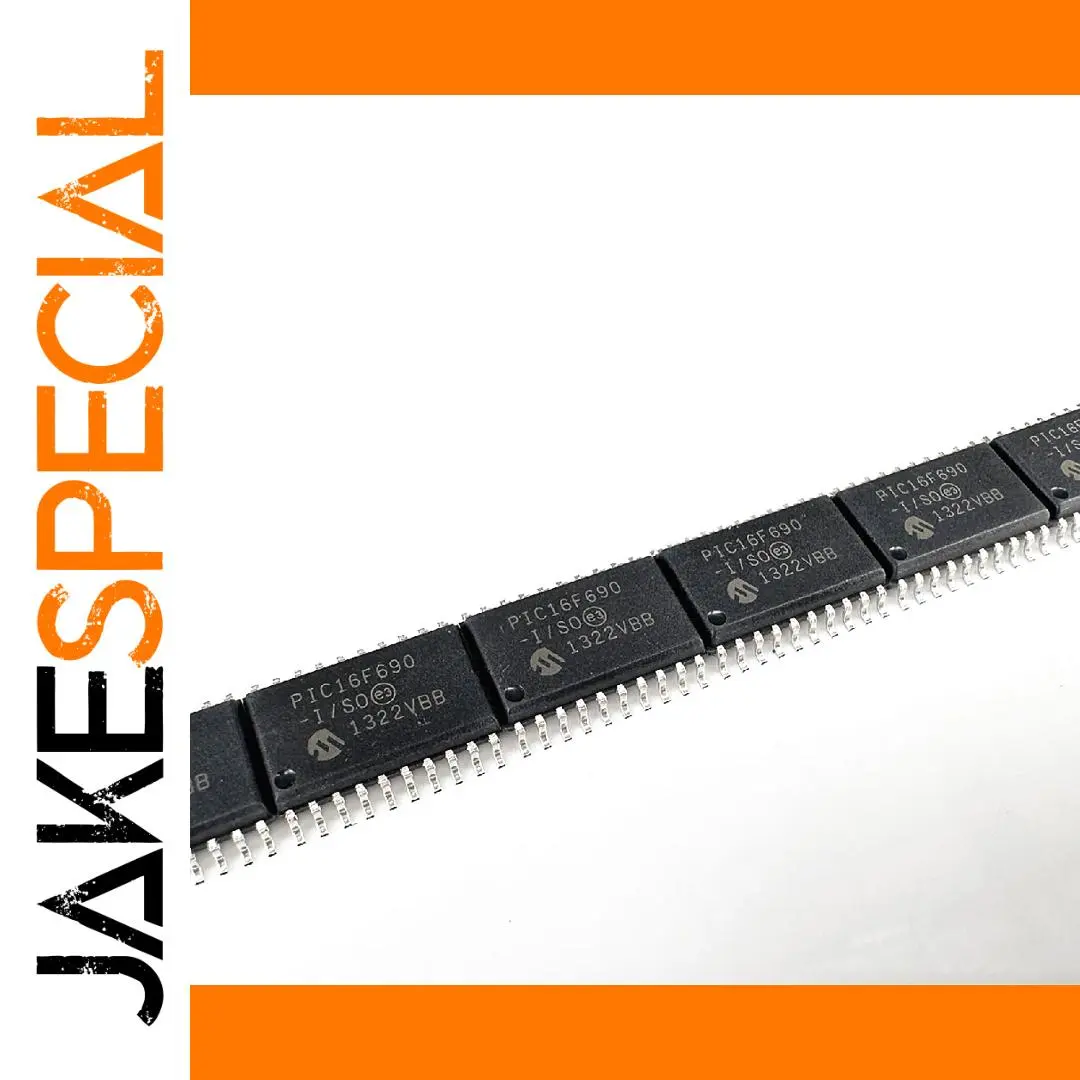 Experience seamless integration with this set of ten original PIC16F690-I/SO microcontrollers, each housed in a compact SOP-20 package. Designed for precision electronic applications, these 8-bit microcontrollers combine reliability and efficiency. Their uniform black matte finish, crisp white printed text, and precisely spaced 20 metallic pins ensure a professional, high-quality appearance that guarantees optimal connection and performance. Whether you're developing complex embedded systems or replacement parts, this set is ideal for streamlined manufacturing and prototype development. Trust in their consistent quality and detailed construction to elevate your projects, providing robust execution for a wide range of electronic applications. Your build will benefit from their technical excellence and dependable operation.