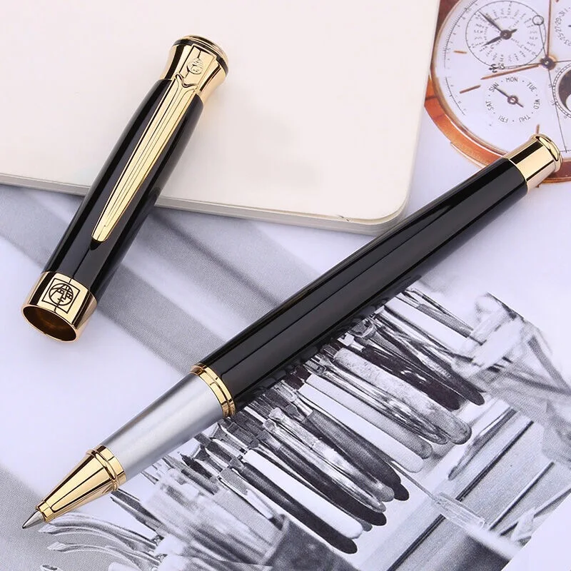 - The cap features a distinctive emblem or logo in black and silver, contributing to the pen’s sophisticated appearance.