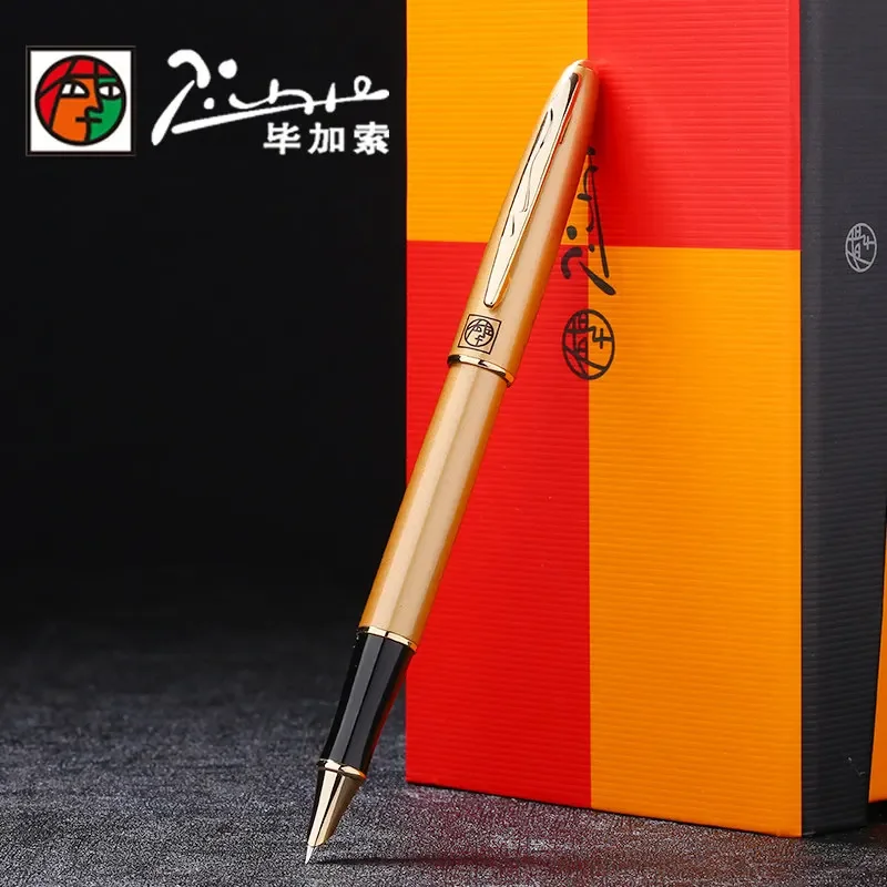 Experience the elegance and precision of this Picasso Pimio 606 Luxury Fountain Pen, designed for discerning writers and collectors. Crafted with a sleek, glossy black metal body accented by a stunning golden barrel, clip, and trim, this pen exudes sophistication and high-quality craftsmanship. Its refined profile measures approximately 145 cm in length, providing a comfortable grip for extended writing sessions. The pen features a meticulously crafted 0.38mm stainless steel extra-fine nib ideal for detailed calligraphy and fine writing. With a removable ink converter compatible with international standard ink cartridges or bottled ink, you have versatile options for your ink needs. A secure snap-on cap ensures the pen remains protected when not in use. Perfect as a luxury gift or addition to your collection, this pen combines style and functionality seamlessly.