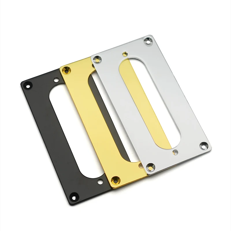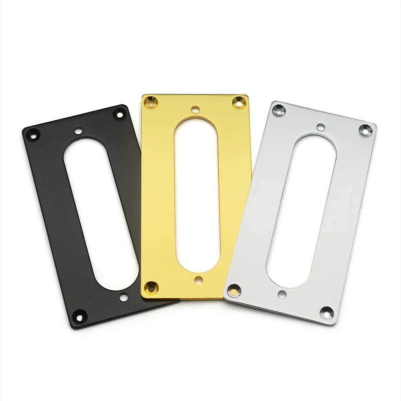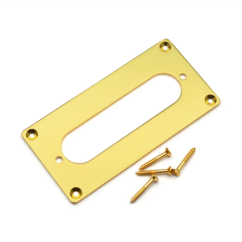 Upgrade your electric guitar's aesthetics and functionality with this set of four precisely designed pickup convert rings. Crafted from durable iron and finished in sleek black, luxurious gold, or reflective chrome, these rings seamlessly fit over humbucker cavities, transforming them into single pickup mounts. The clean, minimalist rectangular shape with rounded edges offers a modern and polished look. Their precise measurements—92mm by 46mm on the outside and 70mm by 18mm on the inside—ensure perfect compatibility with standard humbucker holes. Installation is straightforward with included mounting screws. These rings are ideal for customizing your guitar's appearance, providing a smooth, professional finish that combines style and technical precision, resulting in a more refined instrument.
