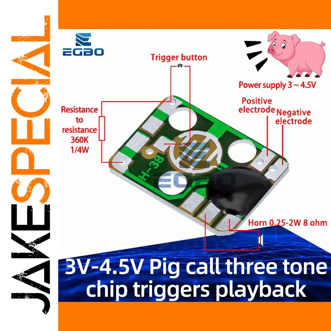 - Operates on a voltage supply of 3V to 4.5V, capable of producing pig call sounds with a playback duration of approximately 3 seconds.