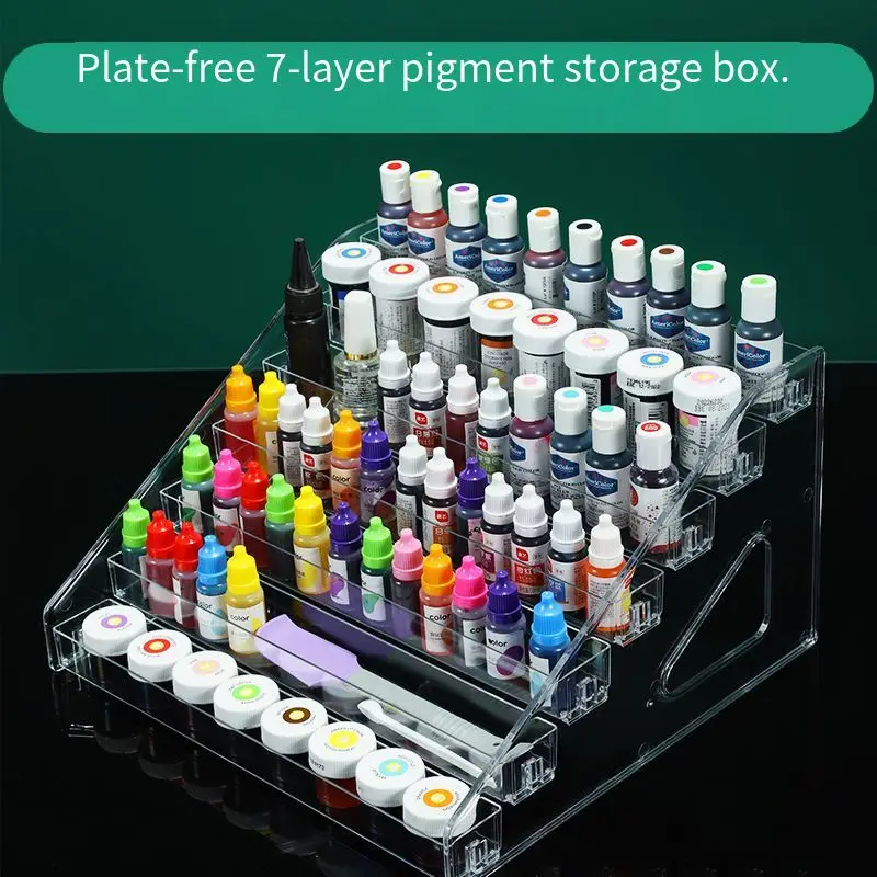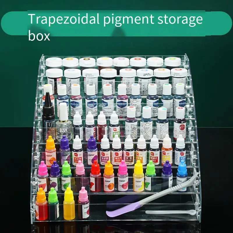 The Pigment Multilayer Storage Box is the ultimate solution for artists and hobbyists seeking a tidy and organized workspace. Its modern trapezoidal design, made from high-quality clear plastic, showcases a sleek aesthetic that complements any studio setting. With multiple layers designed specifically for pigment painting bottles and resin coloring models, this rack ensures easy access and displays your colorful inventory beautifully. Available in various configurations, including Small (24 squares), Large (15 squares), and levels up to seven floors, the storage box provides versatile options tailored to your needs. Say goodbye to clutter and hello to an inspired workspace filled with creativity and color.