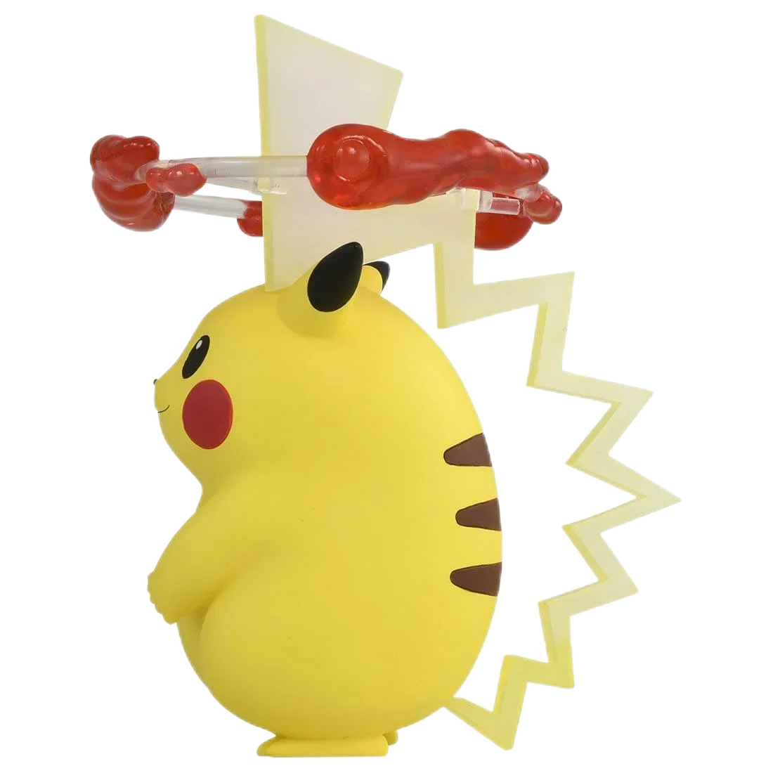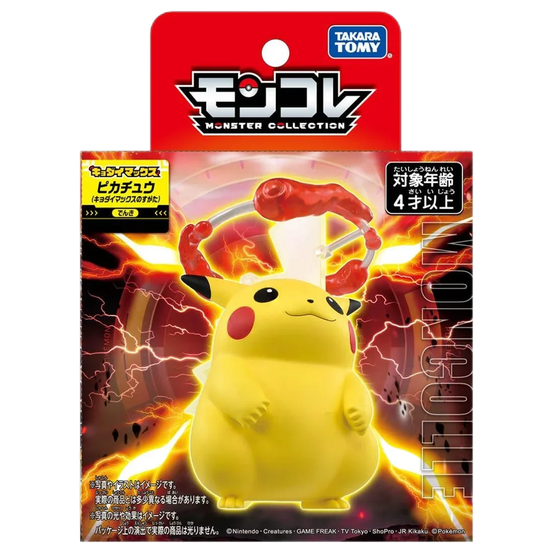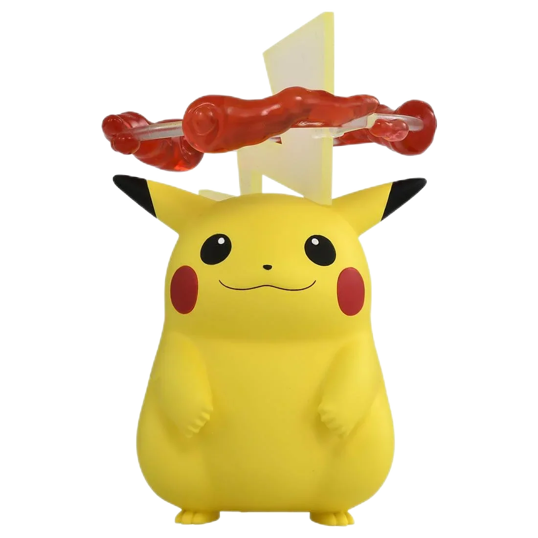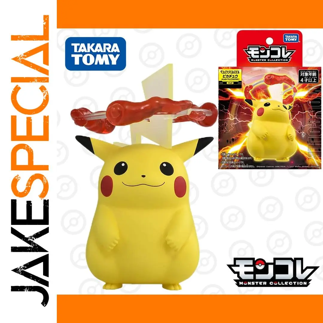 Bring home the vibrant charm of this Takara Tomy Monster Collection Pikachu (Gigantamax) resin figure, measuring approximately 13 cm with dimensions of 14 x 14 x 11 cm and weighing 168 grams. Carefully crafted to faithfully capture Pikachu’s lively appearance from Pokémon Shield, it features a bright yellow, chubby, stylized form with detailed black-tipped ears, cheerful facial expression, and prominent accessory resembling a textured, realistic branch on its head. Layered yellow lightning-bolt-shaped pieces add dynamic energy, enhancing its electric theme. This high-quality, finished, unisex figurine, suitable for collectors aged 18 and up, promises to be a captivating addition to any Pokémon collection.
