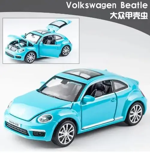 Immerse yourself in nostalgic elegance with this beautifully crafted pink 1:32 scale diecast Volkswagen Beetle. Its soft pastel pink color with a high-gloss finish accentuates smooth, rounded curves, capturing the classic Beetle’s iconic shape. This model boasts vintage details such as oval-shaped headlights, a black grille with horizontal slats, and subtle door handle grooves that enhance its realistic appeal. The textured black tires with silver multi-spoke rims provide a vintage yet sporty vibe, while the transparent windows reveal a detailed black interior with seats, a dashboard, and a steering wheel. Equipped with interactive battery-powered sound and light functions, it adds an extra layer of realism. Perfect for collectors or enthusiasts, it promises to elevate any display with its charming design and authentic details.