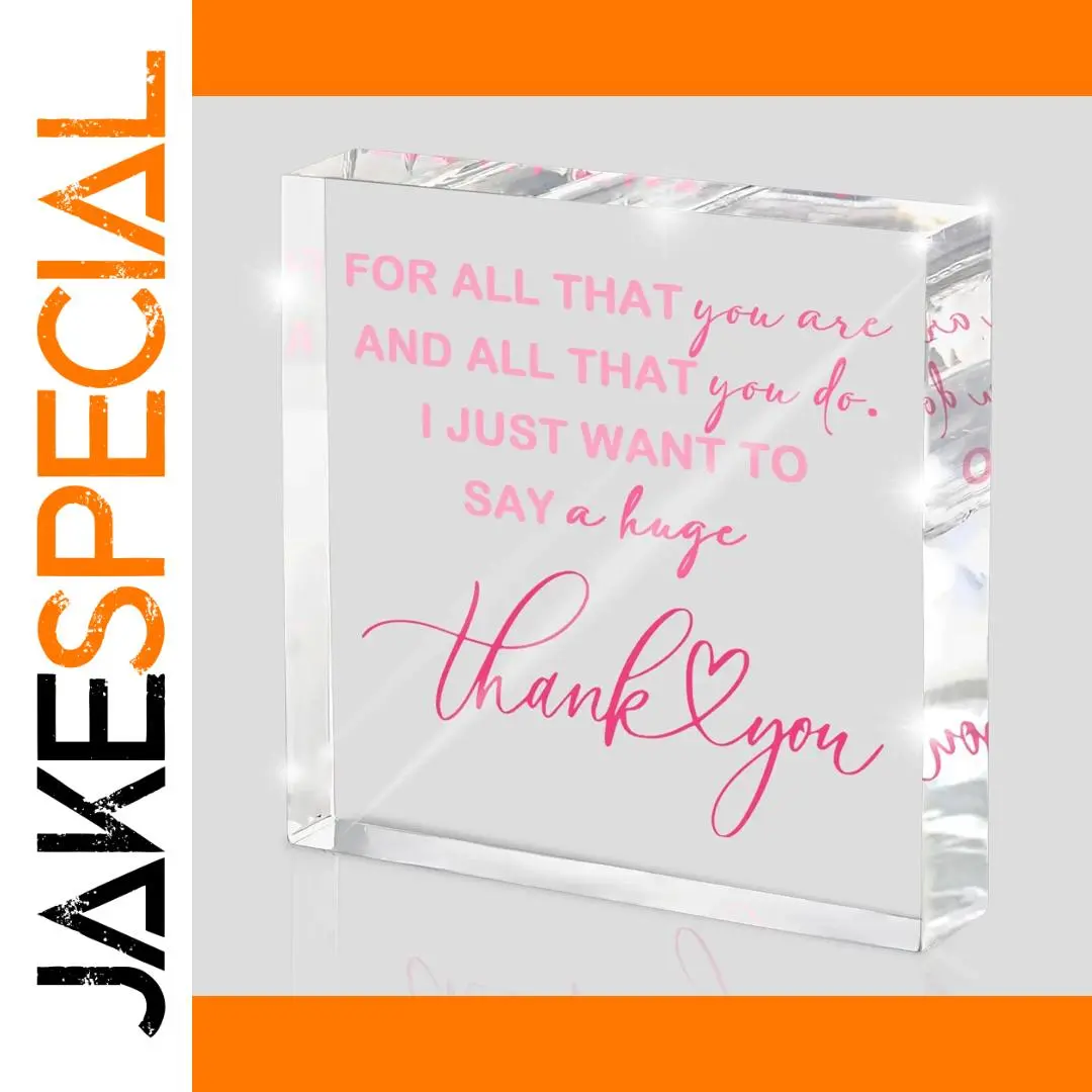 Imagine adding a personal touch to your workspace or gift collection with this beautiful pink acrylic desk decoration. Crafted from durable, glossy plastic, the rectangular block features a transparent, polished finish that reflects light elegantly. The front displays a heartfelt message in charming pink text, blending playful uppercase and lowercase fonts with a sophisticated cursive word “thank” accented by a tiny heart. Its minimalistic design makes it suitable for any desk or shelf, adding a modern and feminine touch that can brighten the day of women, teachers, coworkers, or friends. This stylish piece feels both thoughtful and classy, making it the perfect token of appreciation to convey your gratitude with grace.