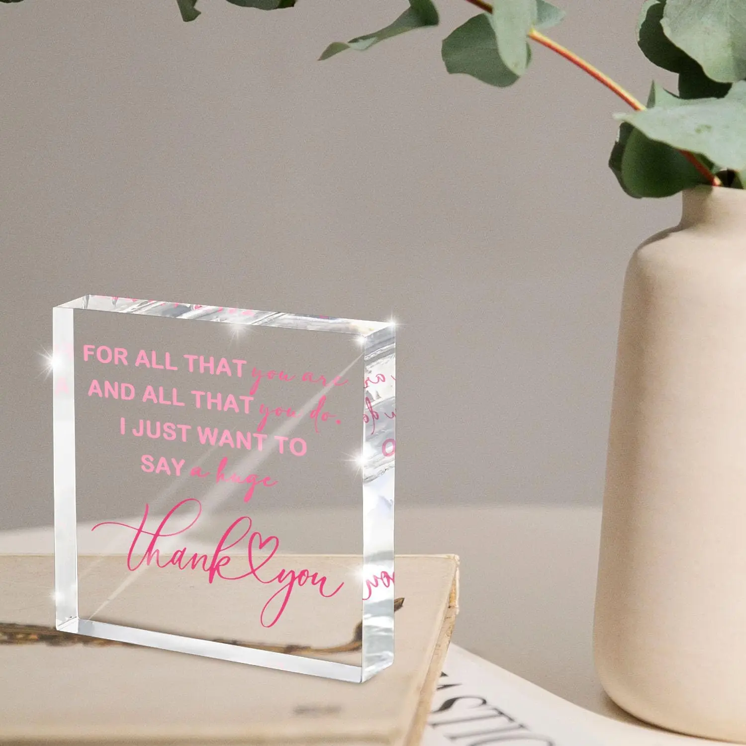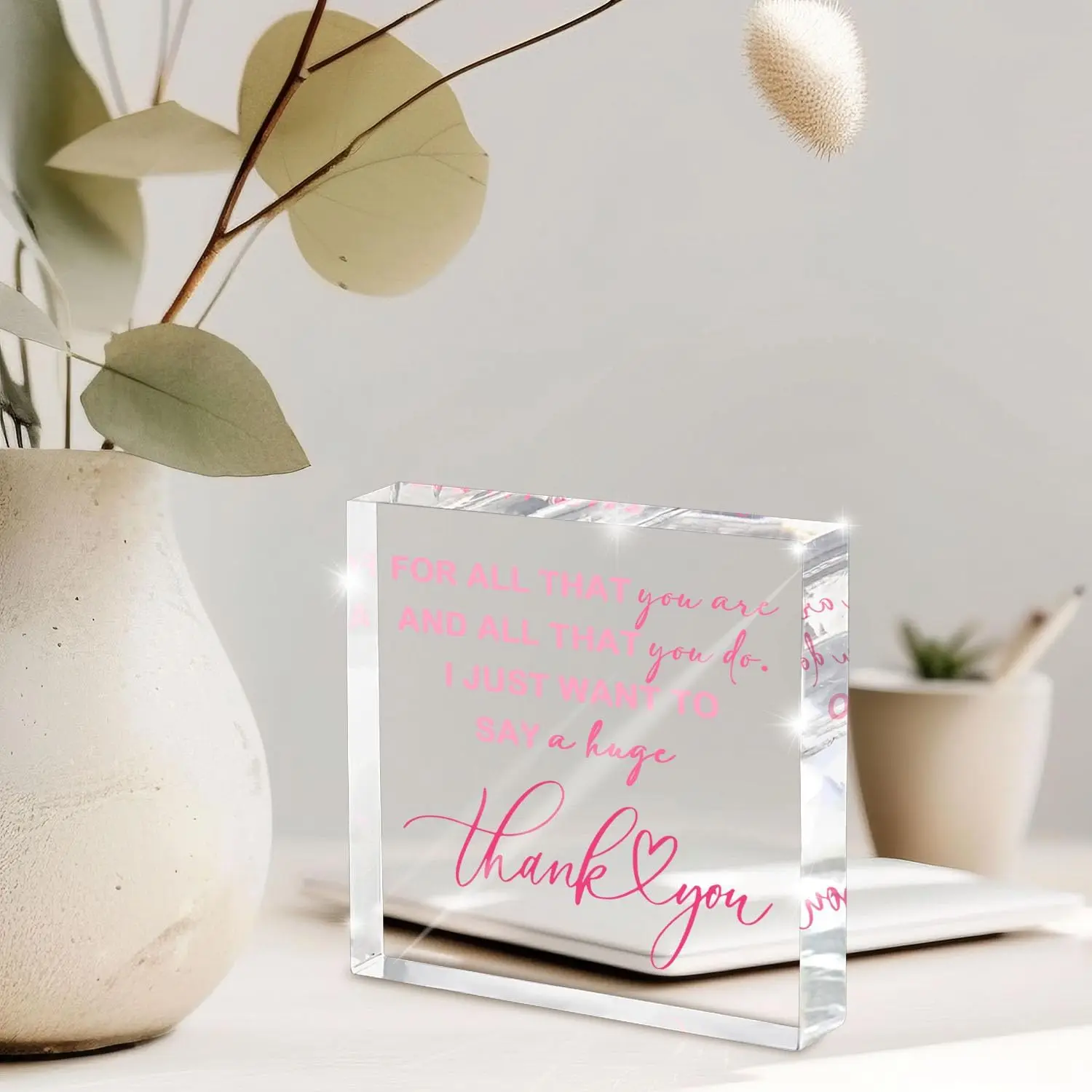 This pink acrylic desk decoration is more than just a gift; it's a meaningful way to express your gratitude beautifully and personally. Its elegant design complements any office or home setup and is perfect for celebrating colleagues, teachers, friends, or loved ones. Imagine their smile when they receive this charming token of appreciation, perfectly suited to brighten their day. Durable, stylish, and heartfelt, this decoration makes a lasting impression. Don't miss the chance to bring a touch of elegance and kindness into someone's life—order yours today and enjoy the joy of giving.