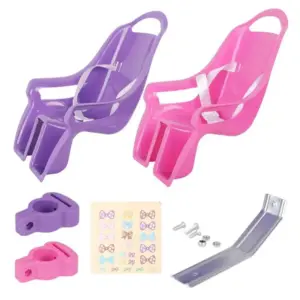 Imagine transforming your child's bike into a delightful scene of imagination and fun with this adorable doll bicycle seat. Crafted from durable ABS plastic with a smooth, shiny finish, this accessory features a comfy, contoured platform and a high backrest designed for small dolls. The vibrant pink and purple colors add a cheerful touch to any bike, inviting your little one to create countless outdoor adventures. The included stickers with pastel bows let your child personalize their bike, making each ride uniquely special. Easy to install with a secure clip strap, this seat encourages role-playing, social development, and outdoor activity—all while sharing memorable moments with beloved dolls. It's the perfect addition to inspire joy and creativity during playtime.