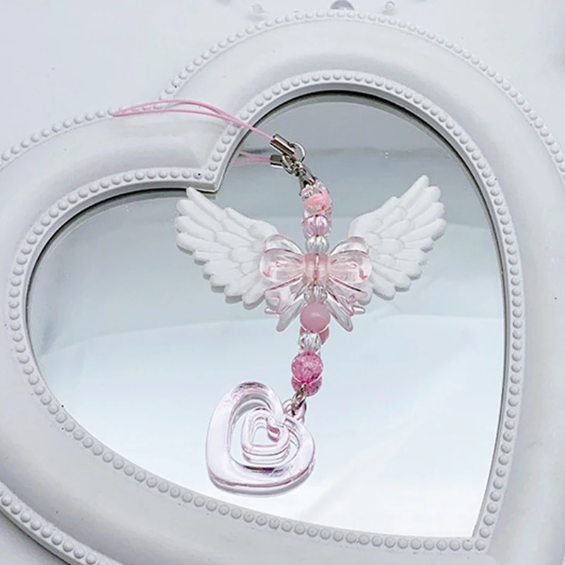 Imagine adding a touch of playful charm to your everyday accessories with this beautifully crafted mobile phone strap. Designed with delicate, fluffy white angel wings and a translucent pink bow, it exudes a sweet yet cool aesthetic that instantly elevates your style. The dangling beads, including a smooth pink sphere, faceted clear bead, and textured pink bead, create a layered, feminine look perfect for personalizing your phone, bag, or keys. Made from high-quality acrylic and synthetic materials, this strap is not only visually appealing but also safe, durable, and resistant to daily wear. Compact and lightweight, it offers a fun way to express your personality while ensuring your essentials stay stylish and within reach.