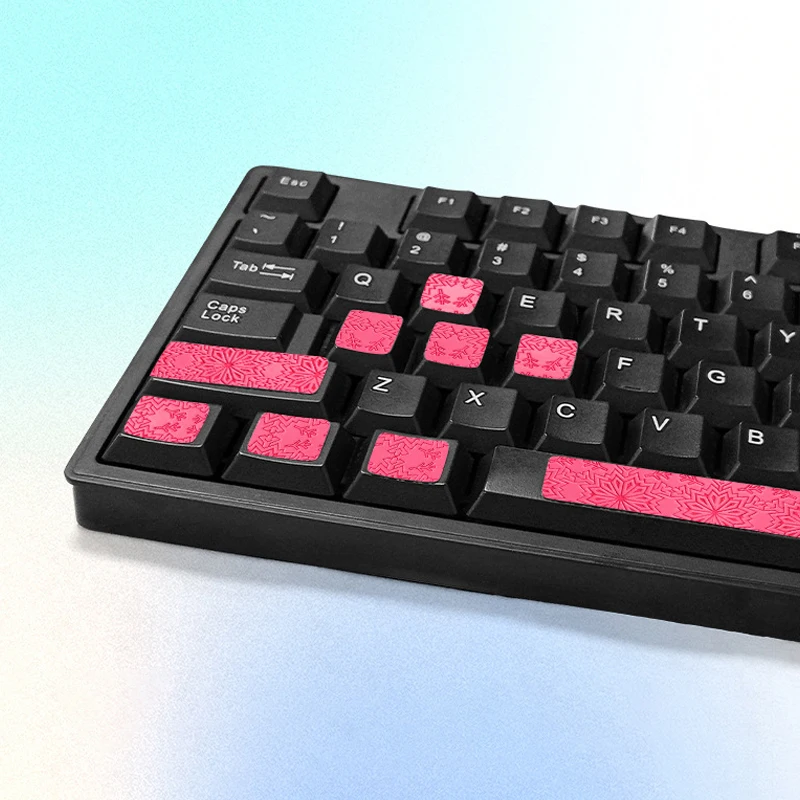 - Vibrant pink color accented with darker red outlines accentuates intricate lizard skin patterns, offering a lively, sporty aesthetic that stands out on any mechanical keyboard.