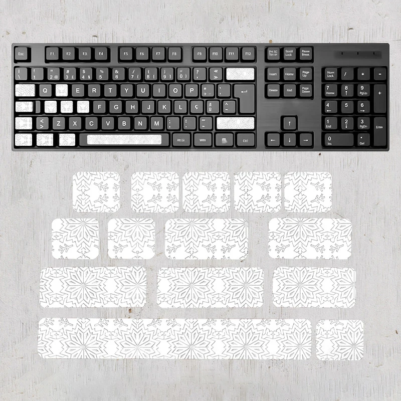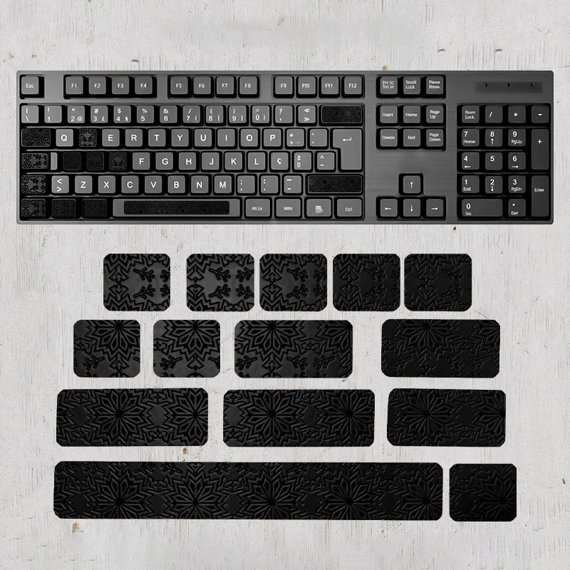 - Compatible with a wide range of mechanical keyboards, easy to apply, and includes multiple geometric and symmetrical motifs for creative customization.