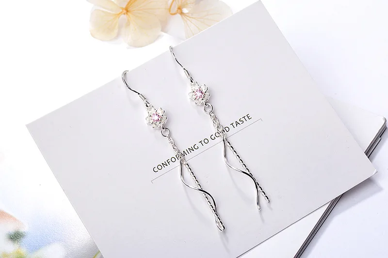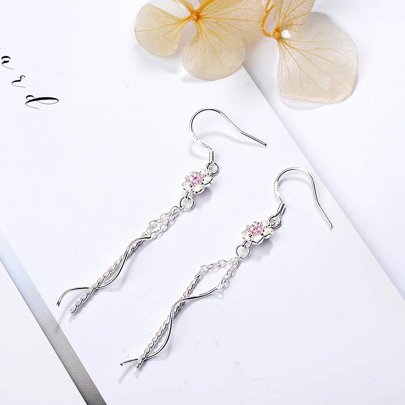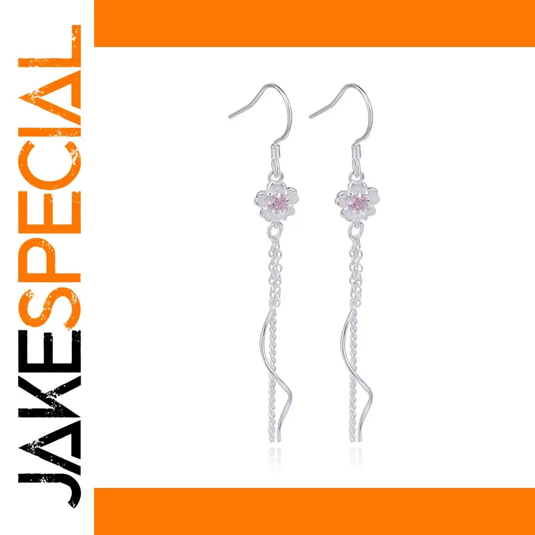 Elevate your style with these delicate female drop earrings crafted from copper with a pink metal finish. Showcasing a graceful long tassel design, each earring features a charming cherry blossom flower shape adorned with sparkling cubic zirconia stones. Perfect for office or career wear, these earrings combine feminine elegance with subtle charm, adding a touch of sophistication to your everyday look. The textured, flowing tassels gently sway with movement, creating an elegant cascade that complements any professional or polished outfit. Designed specifically for women, these earrings are a refined accessory that balances beauty and practicality effortlessly.