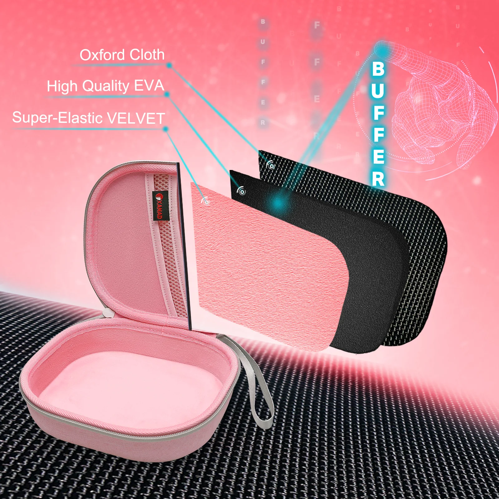 Imagine effortlessly carrying your Bose QuietComfort wireless noise-cancelling headphones in this sleek, soft pink case. Its oval shape and smooth matte finish exude feminine elegance, while the durable EVA exterior provides shockproof, dustproof, semi-waterproof, and wear-resistant protection. The plush pink lining ensures your headphones are protected from scratches when stored, and the mesh pocket offers additional space for cables and accessories. Lightweight and compact, this case slides easily into your bag or backpack, and the comfortable handle makes transport a breeze. Enjoy having your headphones ready to go, whenever you need them, with a stylish and practical storage solution designed just for you.