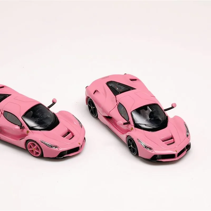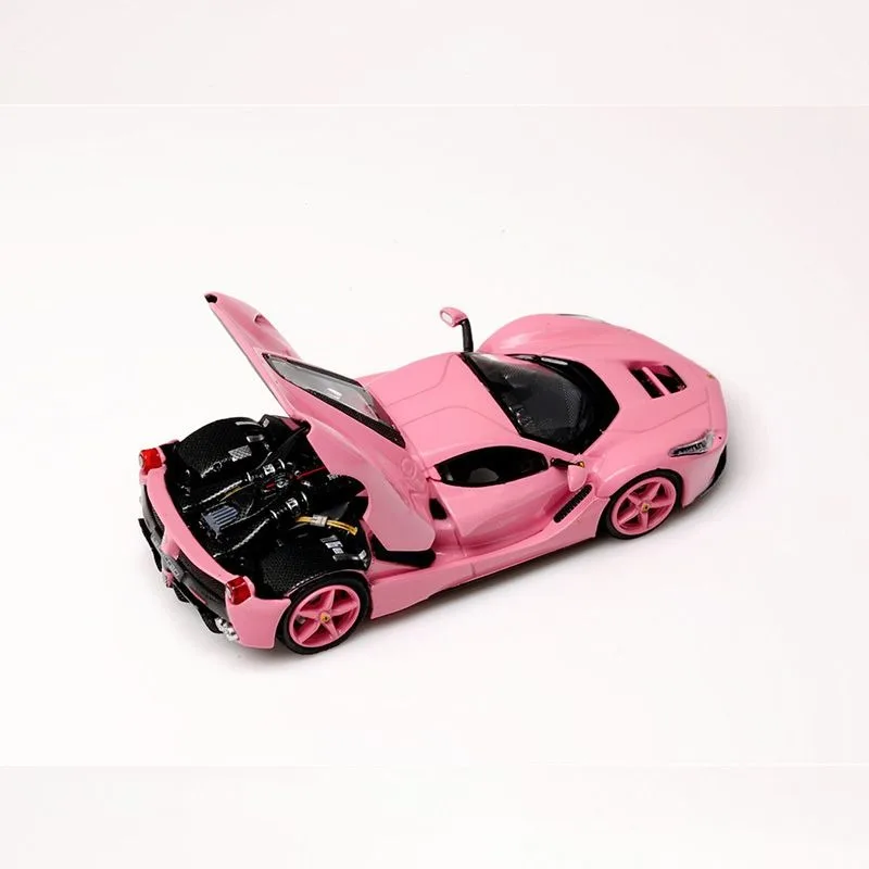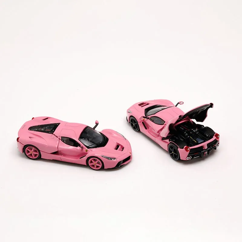 - The model is a limited edition diecast replica of Ferrari LaFerrari in a brilliant glossy pink finish, emphasizing a bold and sporty aesthetic ideal for display or gifting.
