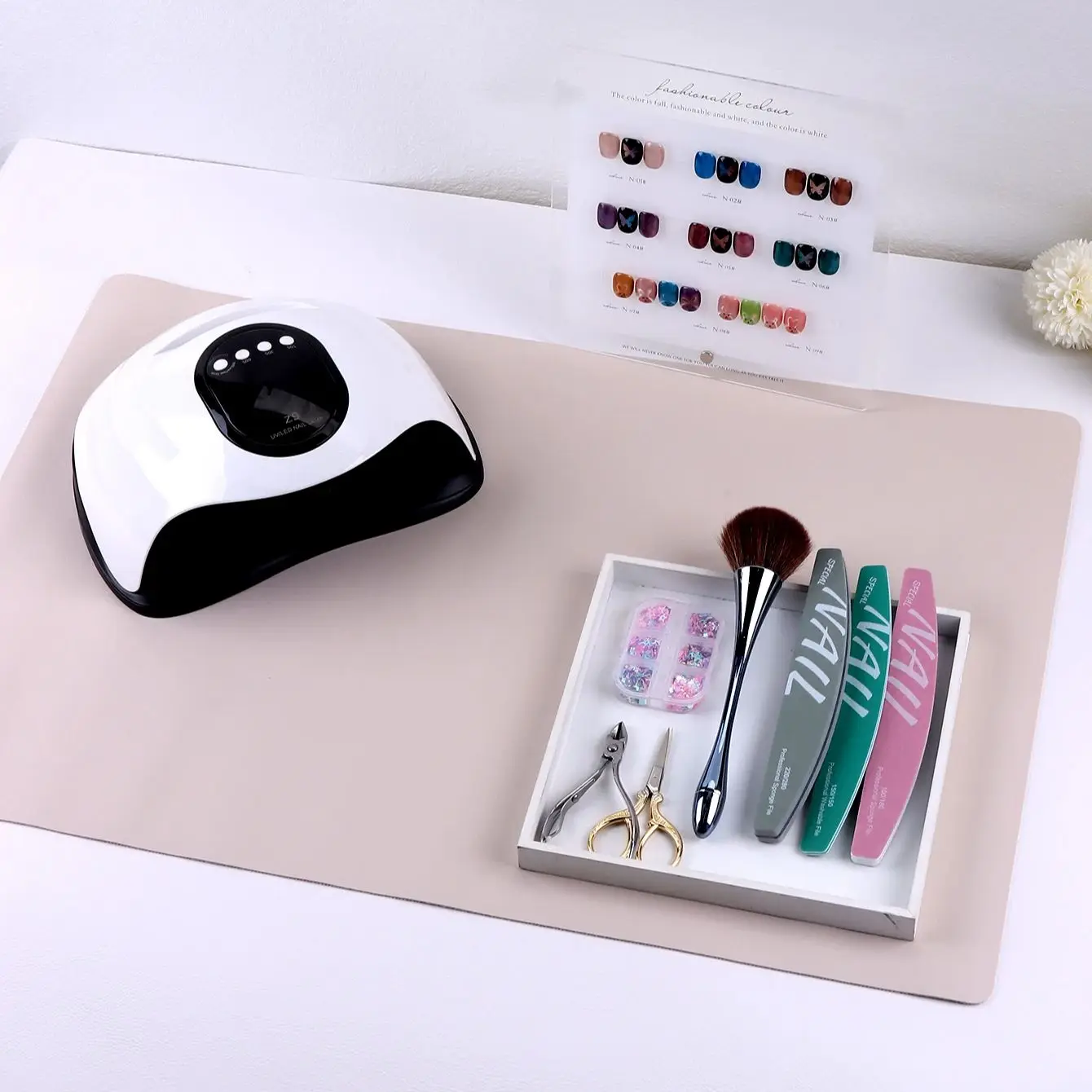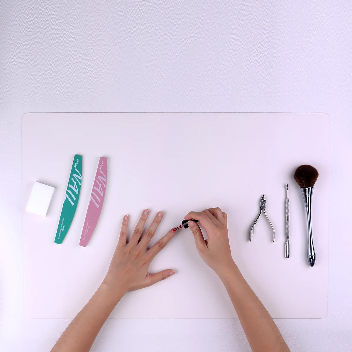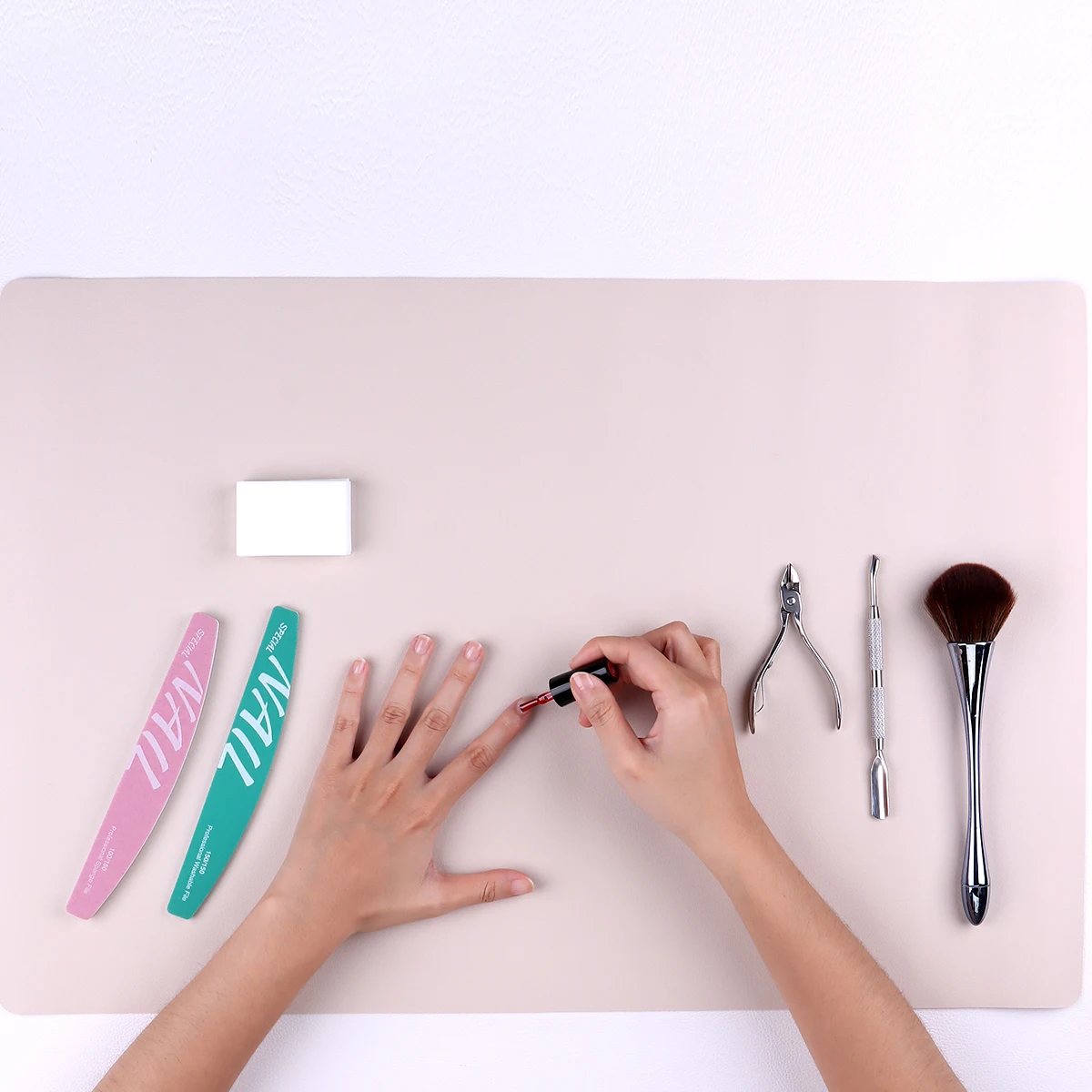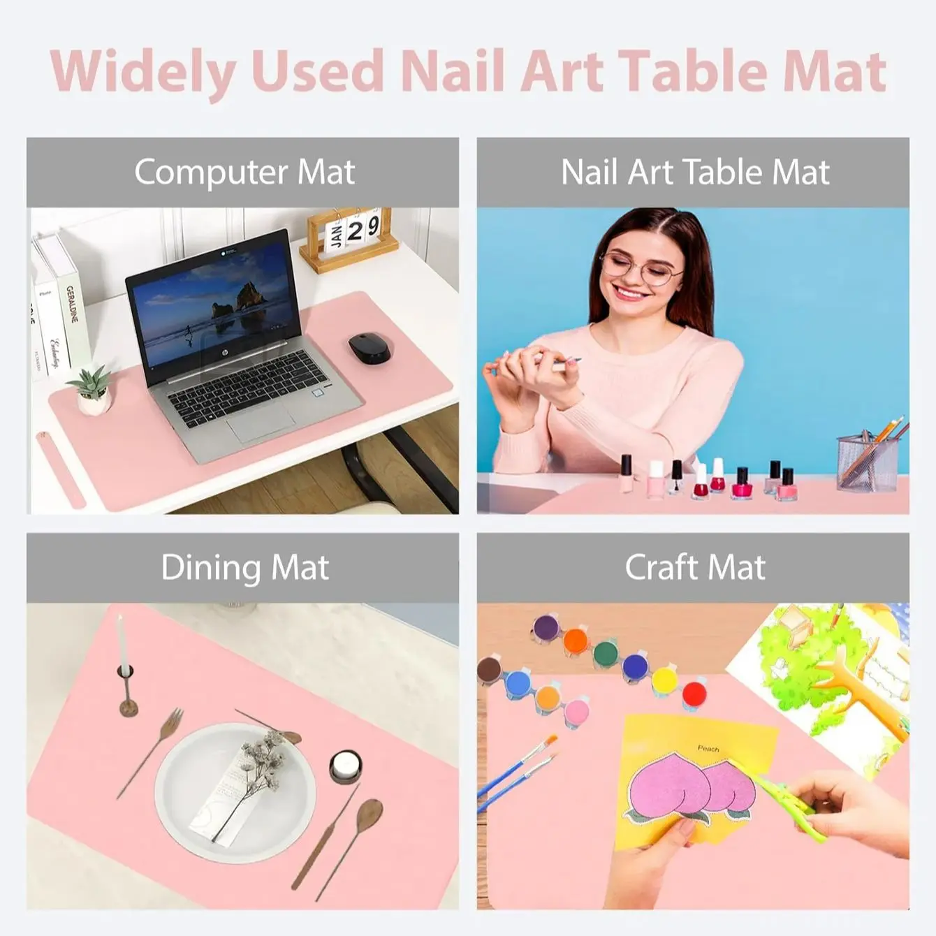 Enhance your nail practice with this versatile, foldable nail art table mat crafted from soft microfiber PU leather in your choice of pink, white, green, grey, blue, or yellow. Measuring 40cm x 60cm or 30cm x 60cm, it offers a waterproof, scratch-resistant, and dirt-resistant surface that provides a comfortable hand rest for professional nail technicians. Its sleek, foldable design ensures easy storage and portability, making it perfect for salon use or personal nail studio setups. With its high-quality, easy-to-clean material and stylish color options, this nail mat combines practicality with aesthetic appeal, creating an organized and inviting workspace for detailed nail art work.