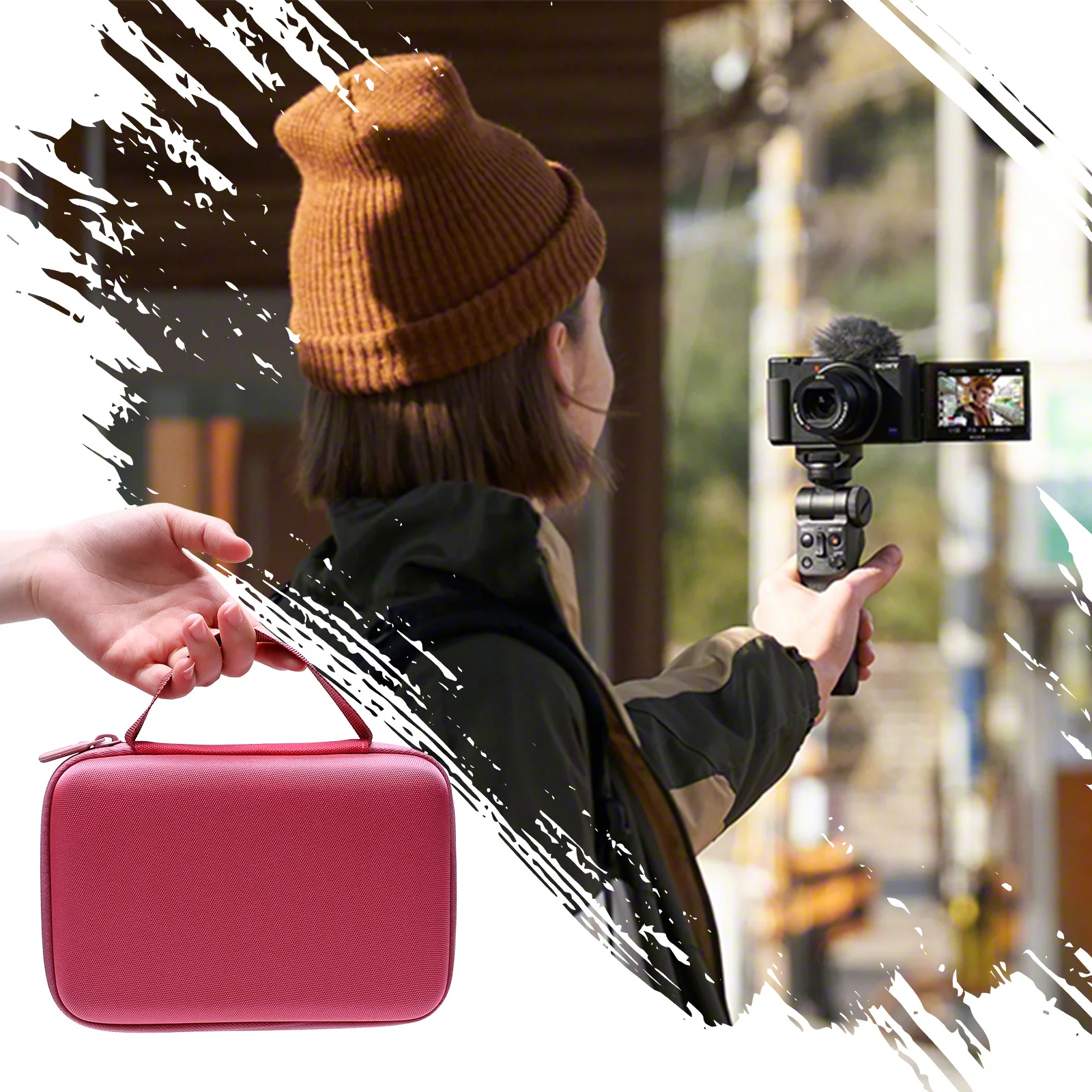Experience ultimate peace of mind with this vibrant pink shockproof camera case designed specifically for Sony ZV-1, ZV-1 II, and 1F Vlog Kamera models. Its sleek, rounded rectangular shape combines youthful charm with modern elegance, making it a stylish accessory for daily use and travel. Crafted from a durable, rigid EVA shell with thickened cushioning, it offers superior protection against drops, bumps, and light rain. The soft velvet interior lining prevents scratches on your camera, while the mesh pocket inside helps organize small accessories like memory cards and cables. The sturdy metal zipper and ergonomic handle enhance usability, and a detachable shoulder strap offers versatile carrying options. This compact, protective case ensures your camera is secure and ready to go whenever inspiration strikes.