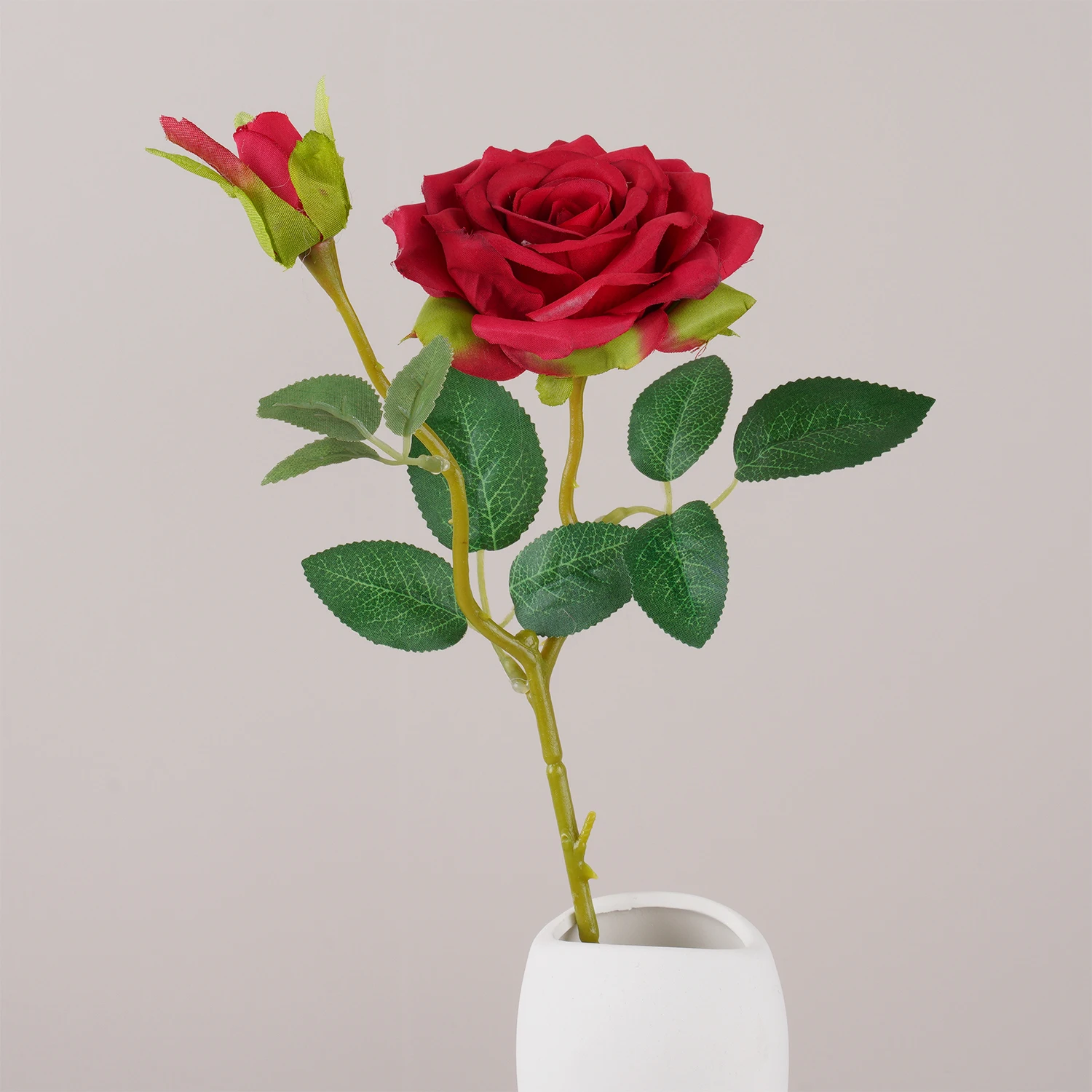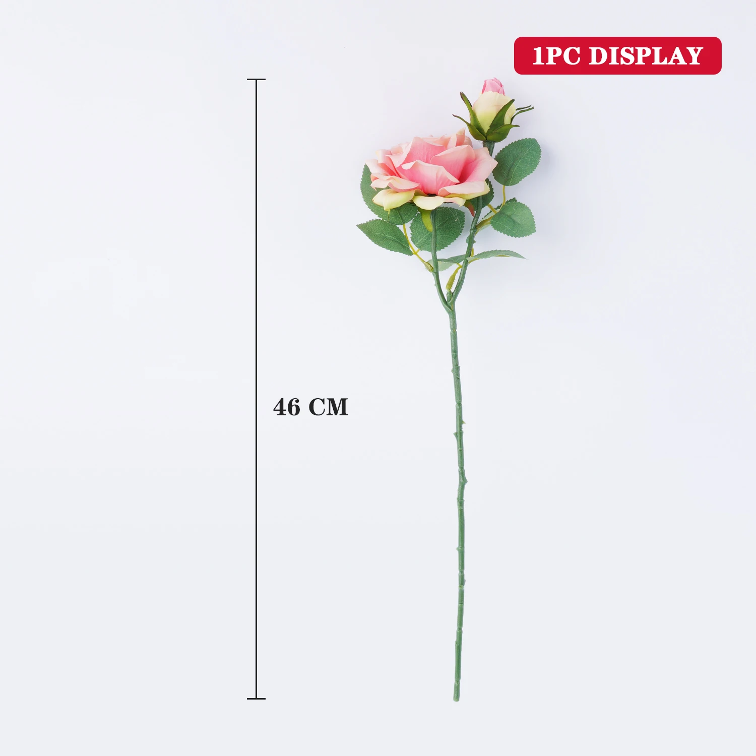 Transform your space with this exquisite pink silk rose bouquet, perfect for adding elegance and charm to any setting. Standing approximately 46cm tall, this artificial flower features a lush, full bloom with velvety petals that showcase subtle shading variations for a realistic appearance. Its vibrant pink color makes it ideal for romantic occasions like weddings, Valentine’s Day, or special celebrations. The bouquet includes textured green leaves and smaller buds, creating an authentic and natural look. The adjustable stem allows for versatile placement, whether in a vase, part of a DIY bridal bouquet, or as a table centerpiece. Durable and reusable, this beautiful flower brings timeless elegance to your home or event décor.