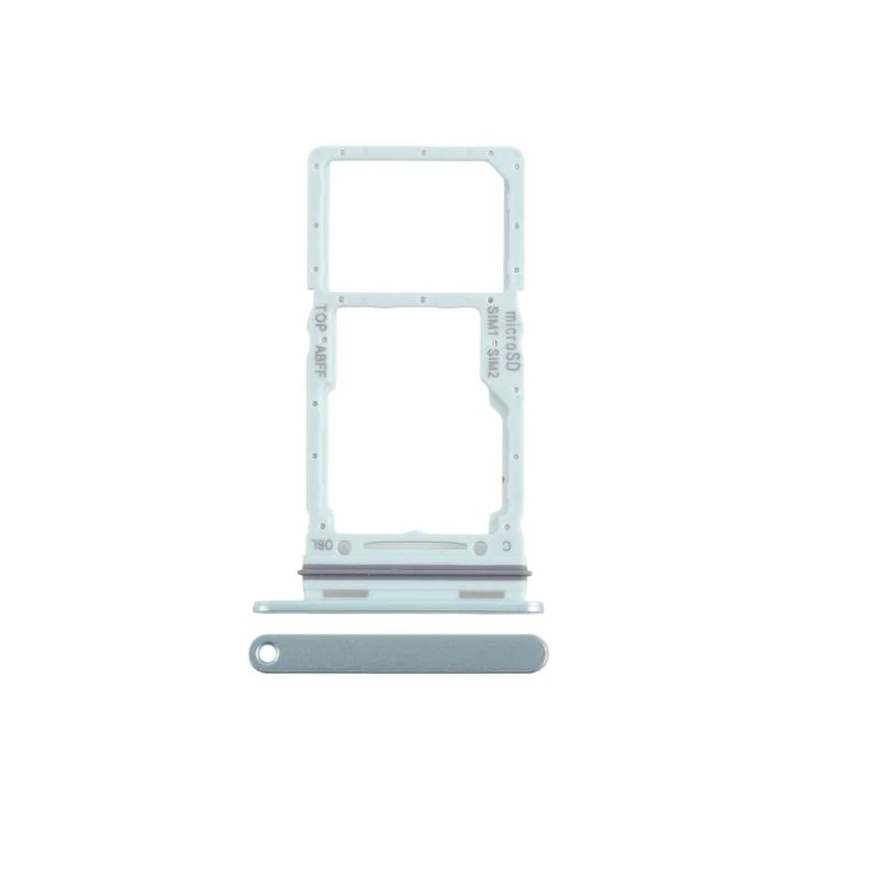 This high-quality, brand new SIM and Micro SD card tray is designed for the Samsung Galaxy A26 5G (SM-A266B) and compatible with Galaxy S10 G973 and S10 Plus G975 models. Featuring a sleek bar design and available in black, green, pink, and white, it offers a functional and minimalist aesthetic. The tray has a large square cutout with rounded corners for the nano SIM card and a smaller rectangular slot for Micro SD cards, all secured by a slightly raised edge. Crafted from smooth plastic, it includes precise alignment features, ensuring a secure fit and reliable performance.