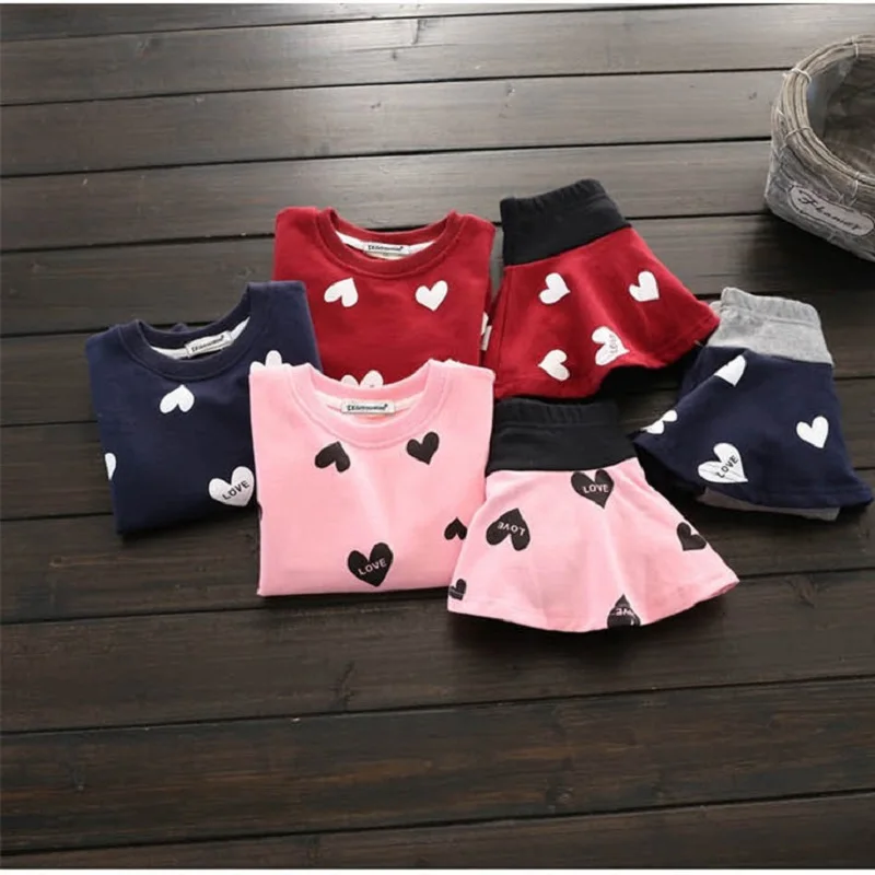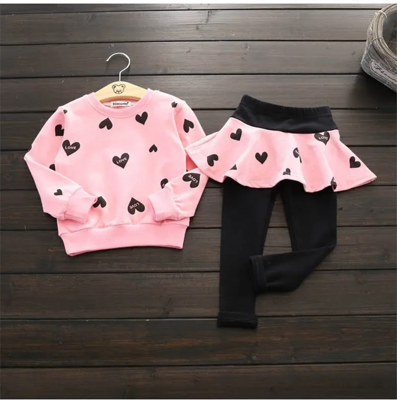 Imagine dressing your little one in this adorable pink outfit, perfect for lively spring days and all seasons. The set includes a soft cotton long-sleeve T-shirt with playful black heart patterns adorned with “LOVE” inscriptions, paired with a flared, ruffled skirt featuring a contrasting black waistband. To complete the look, snug black leggings provide comfort and ease of movement, making it ideal for play, outings, or casual wear. Crafted from breathable cotton fabric, this set offers a comfortable fit with a pullover closure, simple O-neck design, and regular sleeves, ensuring your child feels cozy and cute. Available in sizes from 3T to 7, it combines youthful charm and practicality effortlessly.