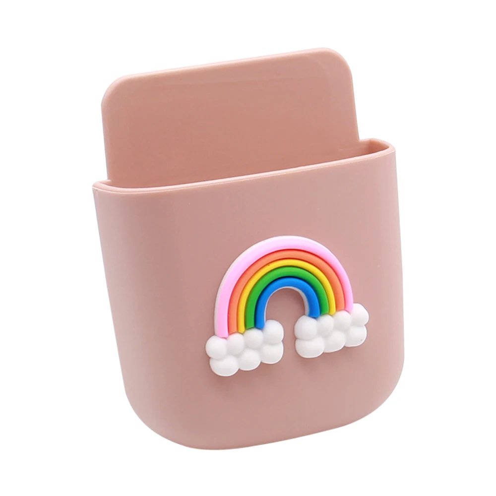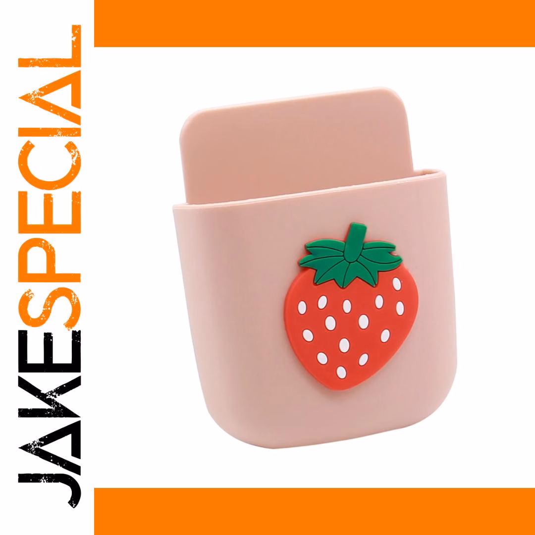 This charming wall-mounted storage box combines practicality with playful design, featuring a soft light pink matte finish and a vibrant strawberry-shaped decorative accent in bright red with white seed dots and a lively green leafy top. Made from durable polypropylene (PP), it measures comfortably to store remote controls, mobile phones, and plugs within a single lattice compartment. Its rounded rectangle shape with gently curved edges offers a smooth, kid-friendly aesthetic that adds cheerful charm to any space. Perfect for organizing small electronic accessories, this versatile unit is easy to mount on the wall, freeing up surface space while infusing your decor with a whimsical, colorful touch.