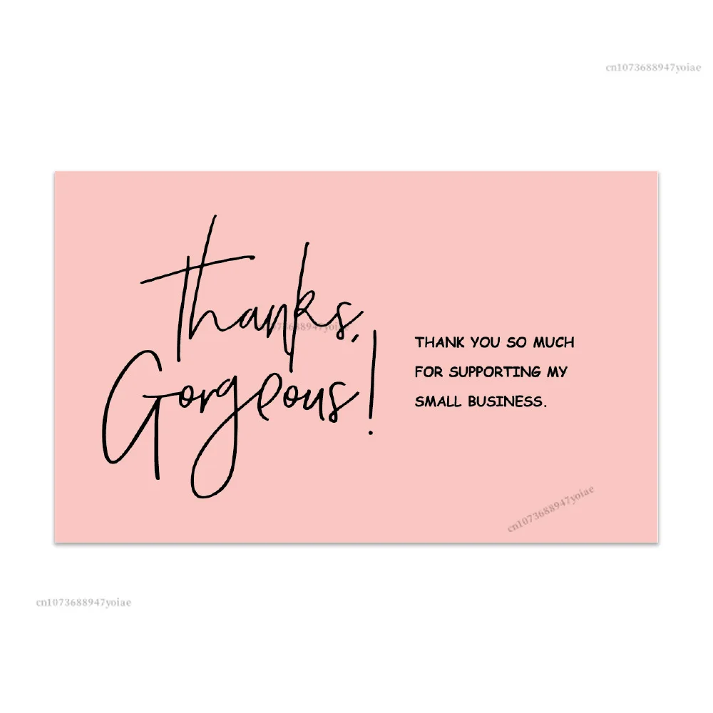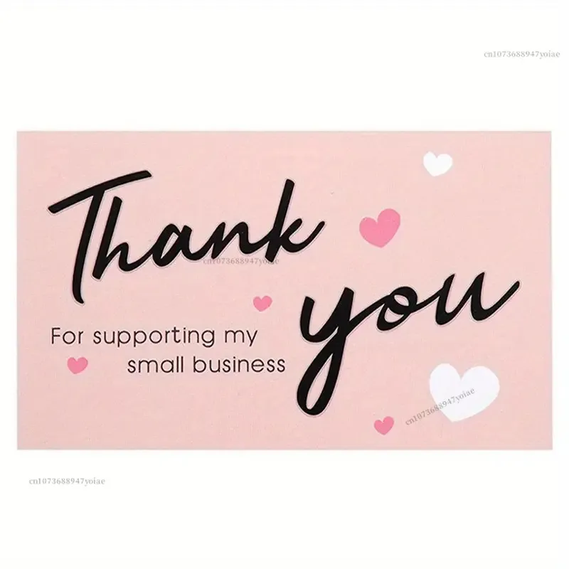 Imagine expressing your gratitude with these beautifully crafted pink thank you cards, designed specifically to add a warm, personal touch to your small business packaging or personal gifts. Measuring 5.4 cm by 9 cm, each card features a smooth, high-quality surface that feels luxurious to the touch. The front boldly displays “Thank you” in stylish black script, while beneath, a delicate message reads “For supporting my small business,” surrounded by charming pink and white hearts. The soft, feminine color palette combined with a clean, modern layout makes each card a perfect way to convey appreciation. These cards are versatile, suitable for sealing letters, gift bags, or adding an elegant detail to your packaging that truly resonates with your clients or loved ones.