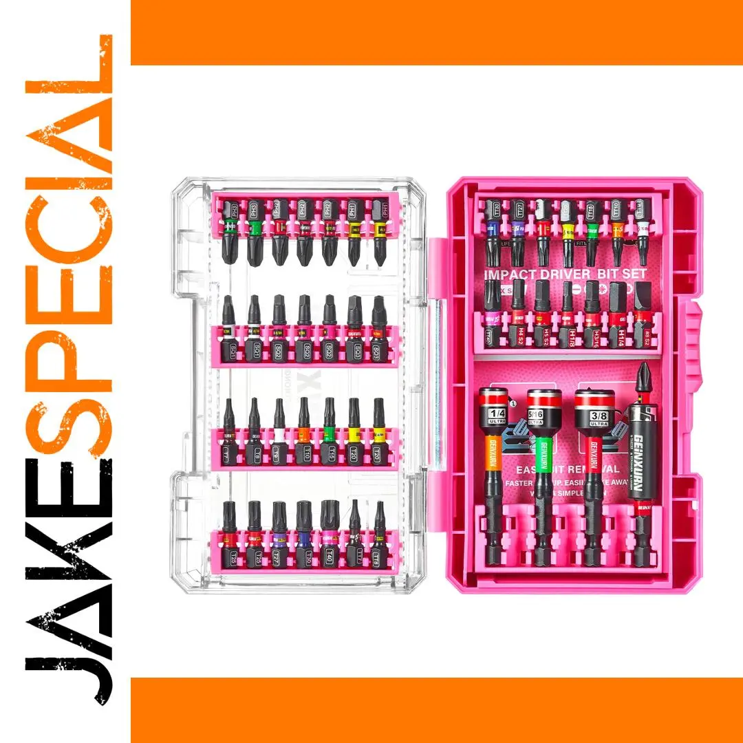 Experience precision and organization with this comprehensive screwdriver bits set, designed to meet all your repair needs. The case features a bold bright pink side contrasting with a clear, transparent section, showcasing the neatly arranged contents inside. Made from durable alloy steel with magnetic tips, these impact bits promise long-lasting performance across various applications. The impact-rated bits come in two sizes—1 inch and 2″—offering versatility for different tasks. Included are a magnetic impact bit holder and three colorful nut drivers—orange, green, and red—making tool identification quick and easy. The stackable design, along with a clip latch and retractable hooks, ensures your tools stay secure and accessible, whether in your workshop or on the go. Elevate your toolkit with this stylish and functional set designed for professionals and DIY enthusiasts alike.
