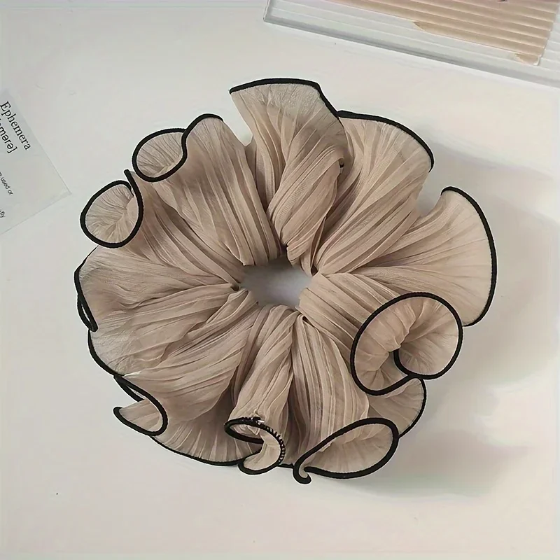 Elevate your hair styling with these vintage-inspired oversize scrunchies crafted from lightweight polyester fabric. Featuring a solid color design in pink, black, coffee, or white, each circular accessory showcases wide pleats and folds, creating a bold, ruffled appearance with retro charm. The elastic material ensures a secure hold for all hair types, while the durable chiffon fabric adds a soft, feminine touch. Perfect for casual outings like shopping, these versatile hairbands are suitable for all seasons and free from harsh chemicals, making them an ideal and stylish choice for adult women seeking a playful yet sophisticated accessory.