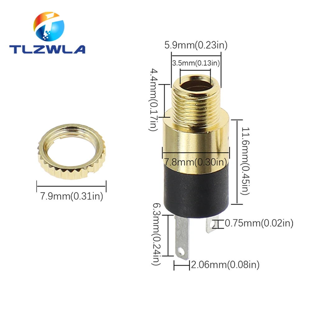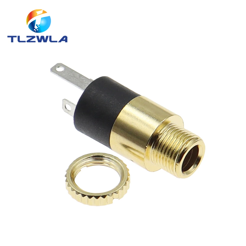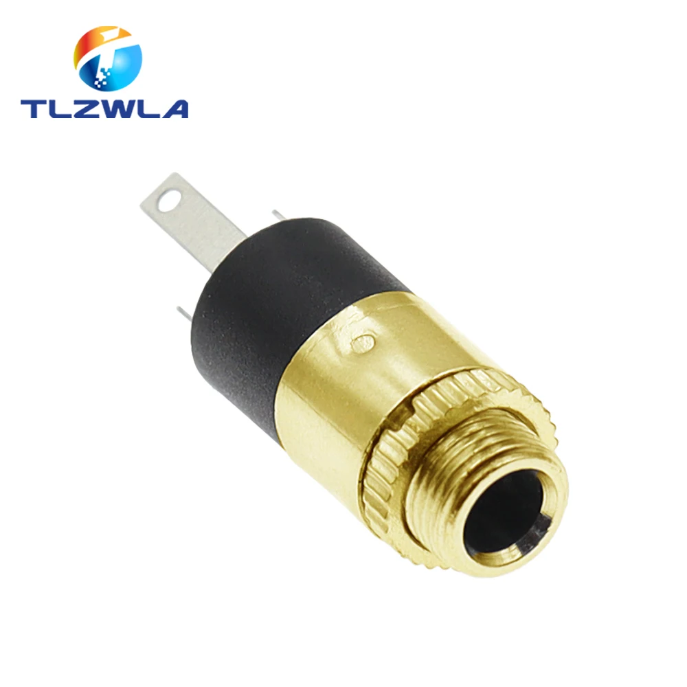 Experience secure and reliable audio and video connections with this set of 5 cylindrical stereo female sockets, model PJ-392. Each socket features a 3.5mm diameter, gold-plated contacts for superior conductivity, and a screw connection for a secure fit. Operating at 24V and RoHS compliant, these sockets are designed for durability and professional use in headphone and multimedia applications. The sleek, cylindrical design with a two-tone finish—black upper section and reflective gold-plated lower part—offers a polished, industrial aesthetic, making them ideal for electronic projects or upgrading your audio equipment. Trust in these high-quality connectors for consistent, dependable signal transfer.