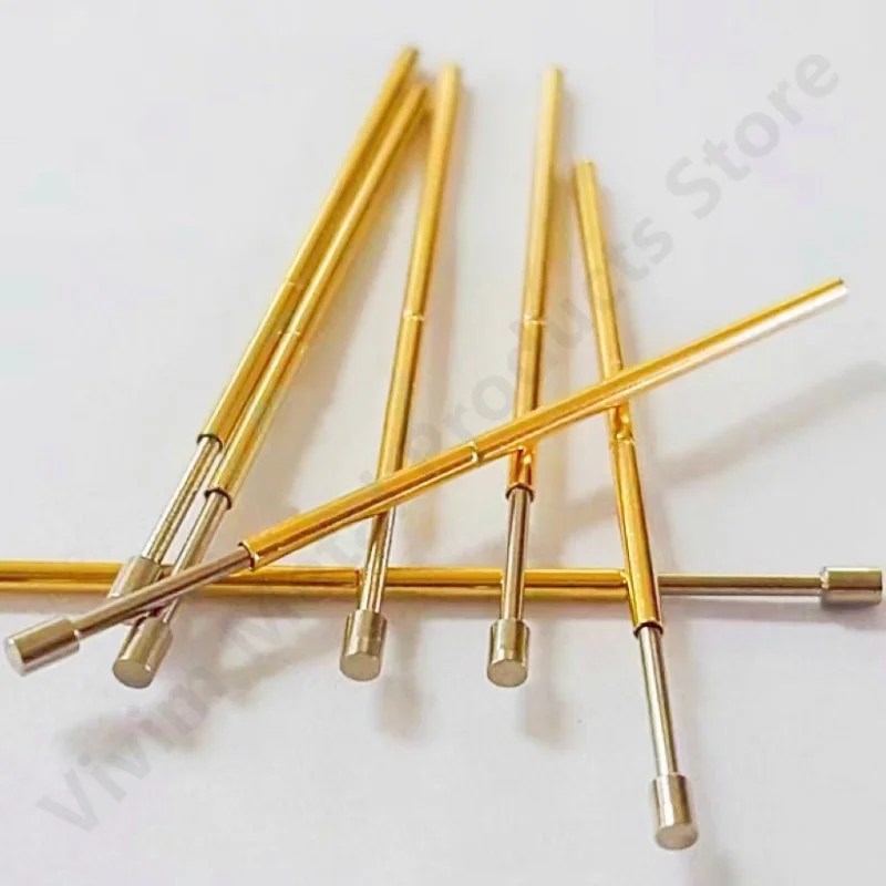 Enhance your electrical testing with these high-precision PL50-G2 spring test pins, available in sets of 20 or 100 pieces. Each pin measures 27.8mm in length, featuring contact tips with diameters of 0.68mm, 0.90mm, and 0.48mm, constructed from durable copper for excellent conductivity and reliability. The sleek, cylindrical design with a shiny, polished finish ensures durability and ease of use in measurement applications. These customizable pins are CE certified, making them ideal for electronic testing and measurement tasks. Suitable for professional use, they deliver consistent performance for your testing needs, backed by quality manufacturing standards.