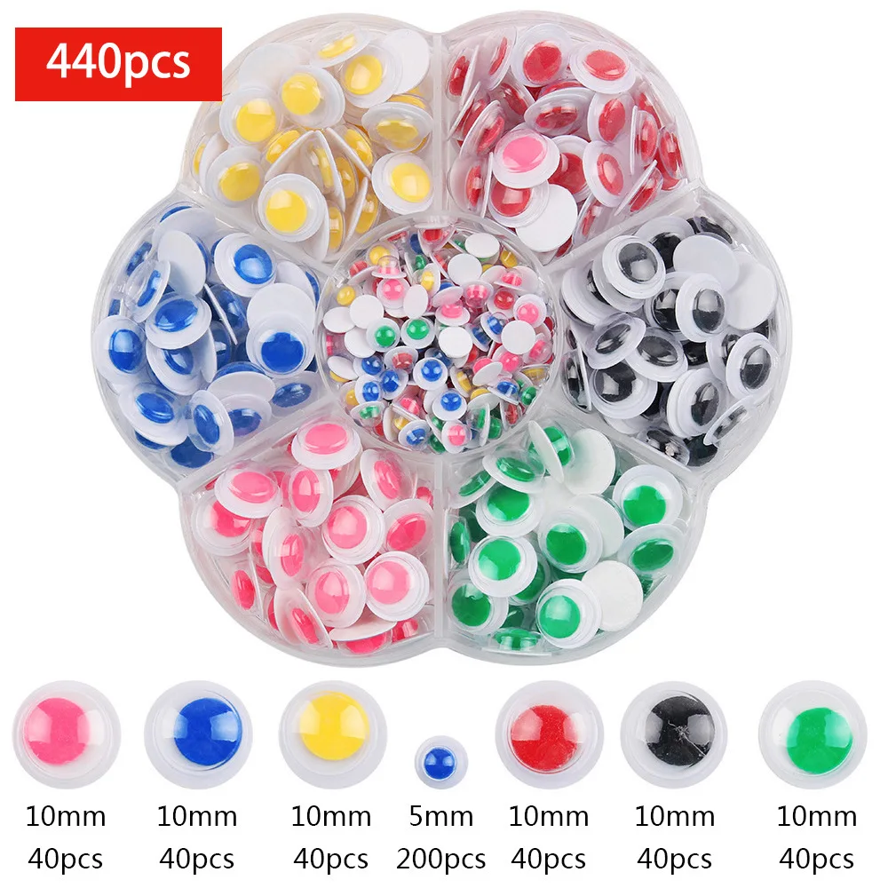 Enhance your DIY projects with this versatile set of 800 or 440 black and white plastic self-adhesive eyes, available in mixed sizes from 4mm to 12mm. Crafted from durable plastic with a glossy, realistic finish, these round, sticky eyes require no glue—just peel and stick—making them perfect for craft enthusiasts, decorations, and educational activities for ages 3 and up. Packaged in high-quality transparent boxes, they offer easy storage and access to a wide variety of sizes, allowing your imagination to run wild as you create, decorate, or teach with these practical and visually appealing craft eyes.