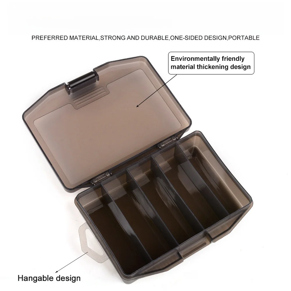 Imagine having all your fishing gear neatly stored and easily accessible with this sleek, durable tackle box. Crafted from sturdy, earthquake-resistant polypropylene, it offers long-lasting protection for your lures and hooks. Its compact size makes it perfect for portable use—whether in your backpack, pocket, or boat. The modern design features a flat, transparent lid for quick content identification without opening, while the interior's five-grid layout keeps everything organized and prevents hook damage. The one-sided opening mechanism allows for swift access in a busy fishing trip, and the waterproof construction ensures your lures stay dry and ready for action. Choose from multiple sizes and color options to match your needs and style. Enhance your fishing experience today with this reliable tackle box.