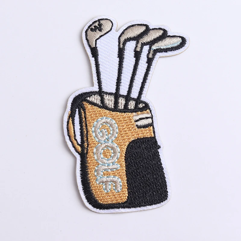 Imagine adding a touch of fun and sportiness to your favorite clothing or accessories with this charming set of five embroidered patches. Each patch measures 7 by 4.7 centimeters and features a lively cartoon-style golf bag filled with golf clubs, crafted with textured, 3D embroidery. The design showcases a beige or light tan golf bag accented with darker shading for depth, a curved black base for contrast, and emerging golf clubs in soft grey and beige tones arranged in a fan shape. With a clean white border framing each patch, these playful motifs are perfect for customizing jackets, bags, or curtains. Made from eco-friendly polyester and designed for easy iron-on application, they bring a cheerful, sporty vibe to your wardrobe. Experience the joy of DIY fashion with this delightful set, adding a subtle yet eye-catching detail to your belongings.