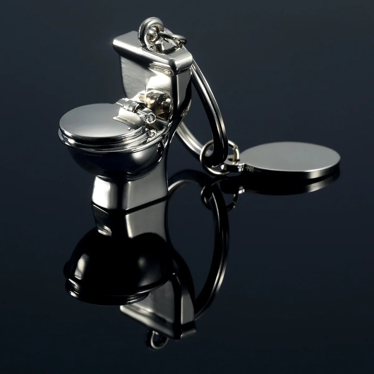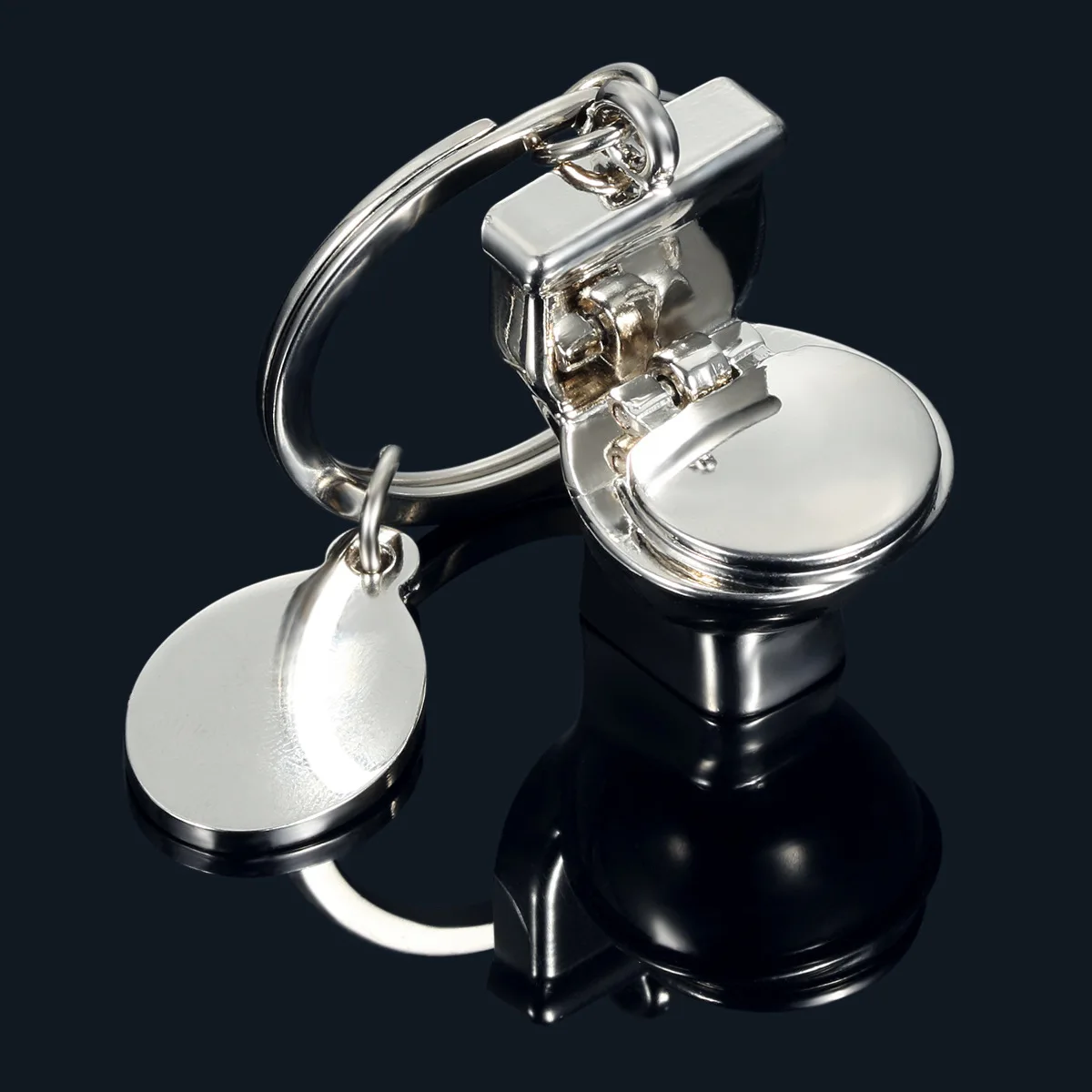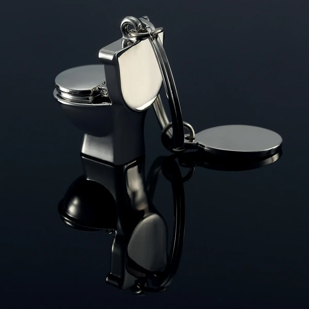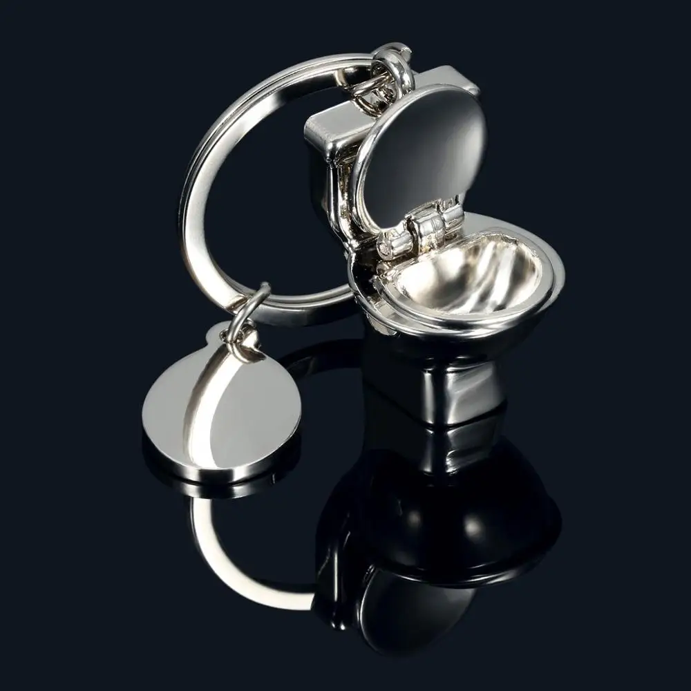 Imagine yourself holding this stylish keychain, crafted from high-quality zinc alloy with a stunning silver finish. Its polished, reflective surface mimics an elegant metallic look, giving it a sleek, modern appeal. The miniature toilet design adds a playful yet whimsical touch, detailed with hinges, bowl, and lid, all in a shiny, metallic silver hue. The compact size and smooth shape make it comfortable to carry and attach to your keys, bags, or accessories. Its trendy, minimalist aesthetic blends fun with sophistication, making it perfect for everyday use or as a fun gift. This keychain will certainly draw attention and spark conversations wherever you take it, adding personality to your accessories.