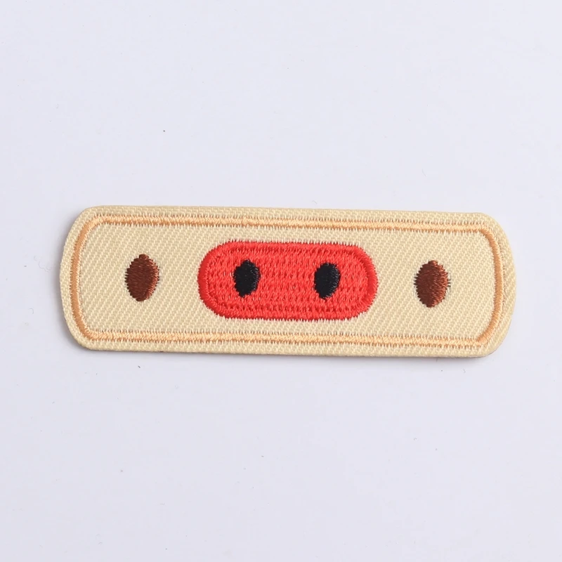 Imagine elevating your wardrobe easily with this playful pig nose patch, bringing fun and personality to any clothing or accessory. Crafted from eco-friendly non-woven fabric, each patch measures 6.6 x 2.1 cm and features a vibrant, dense embroidery that creates a textured, 3D effect. The design showcases a bright red, rounded pig nose with black nostrils, complemented by symmetrical brown ovals for added detail. The neat beige embroidered border encapsulates the design, enhancing its visual appeal. Simple to apply with household irons or heat press machines, this set of five patches offers versatile customization possibilities. Perfect for DIY enthusiasts, these patches are ideal for personalizing T-shirts, bags, coats, pants, or curtains. Bring your creative ideas to life easily with this charming accessory.