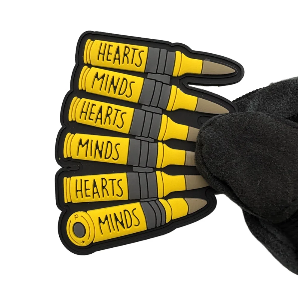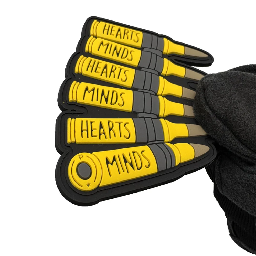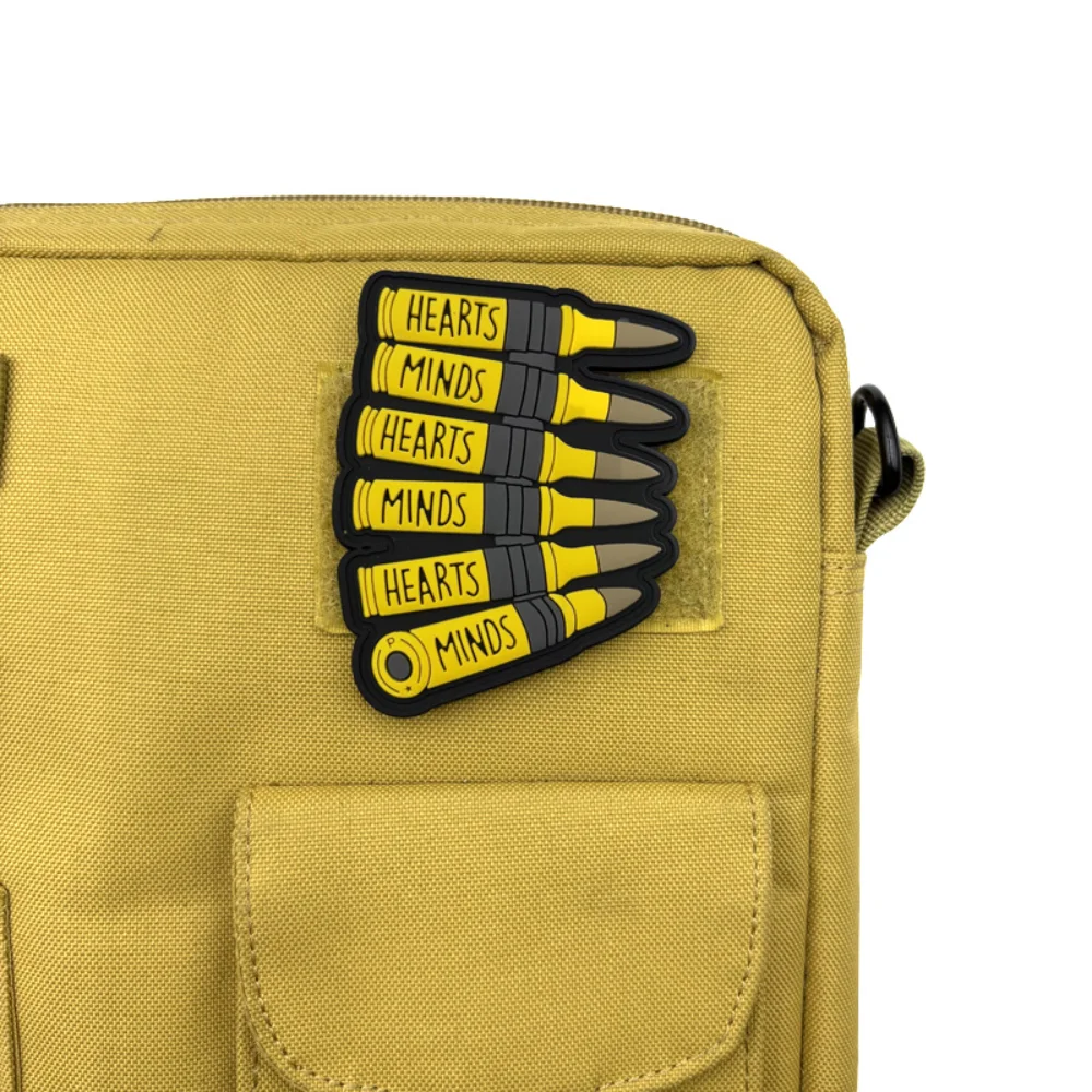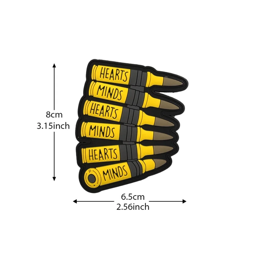 Bring a splash of fun and creativity to your wardrobe with this vibrant patch designed to resemble a playful row of five yellow crayons. Crafted from high-quality PVC and soft rubber, this patch features a lively cartoonish style with rounded edges and subtle shading that creates a sense of depth. The bright yellow crayons are accented with black tips and side details, and clear black lettering spells out “Minds” or “Hearts,” providing a whimsical, artistic vibe. Enclosed within a black border, it’s perfect for adding personality to your jackets, backpacks, hats, or DIY projects. Its durable, eco-friendly design ensures it remains in great condition over time, making it an appealing addition to any casual or creative adventure.