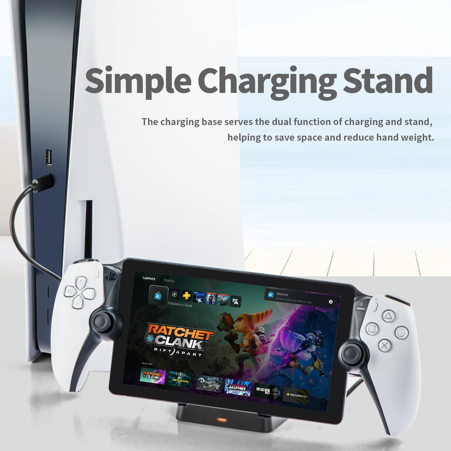 Keys features of this PlayStation Portal charging dock