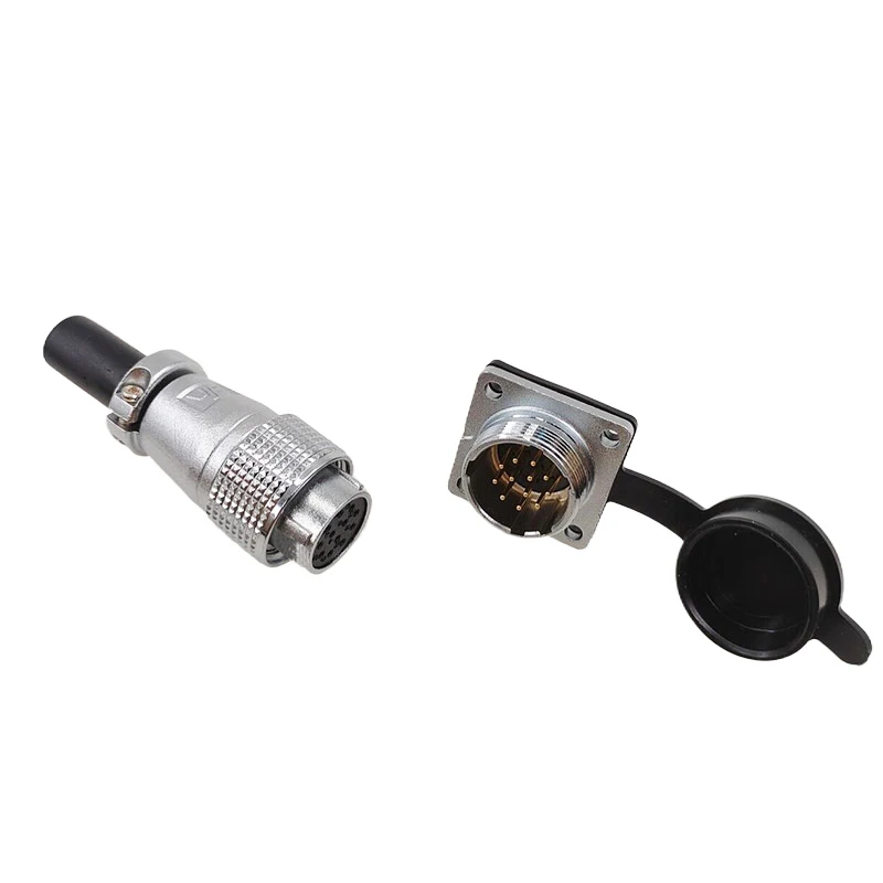 Experience reliable electronic connections with this set of PLS20Pin air carrier plug connectors, featuring models ranging from 2P to 12P and an opening diameter of 20mm. Crafted for durability and precision, these connectors include both male and female types with gold-plated pins, providing excellent electrical contact. The sleek cylindrical design, finished in metallic silver with textured knurled grip areas and black plastic caps, combines functionality with a professional, industrial aesthetic. Operating at 220V and CE certified, this versatile set includes 5-piece packs for select sizes, ensuring you have the right components for your electronic projects and repairs, offering both ease of use and high performance.
