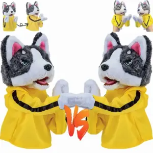 Bring playful charm to your collection with this plush husky hand puppet, measuring approximately 23 cm (9.06″). Crafted from soft, plush material free of hazardous chemicals, it features an adorable cartoon-like design with expressive blue eyes, upright pink-lined ears, and a mischievous smile revealing a pink tongue. The puppet is dressed in a bright yellow jacket with black stripes, adding a lively, sporty touch. With vocal capabilities, this interactive toy is perfect for engaging, imaginative fun. Available in five distinctive styles, it’s ideal for ages 14 and up, making it an excellent gift for enthusiasts who love unique, detailed plushies that evoke joy and creativity.