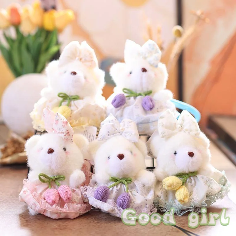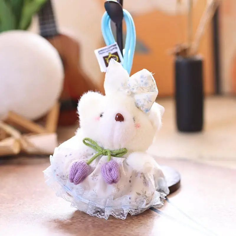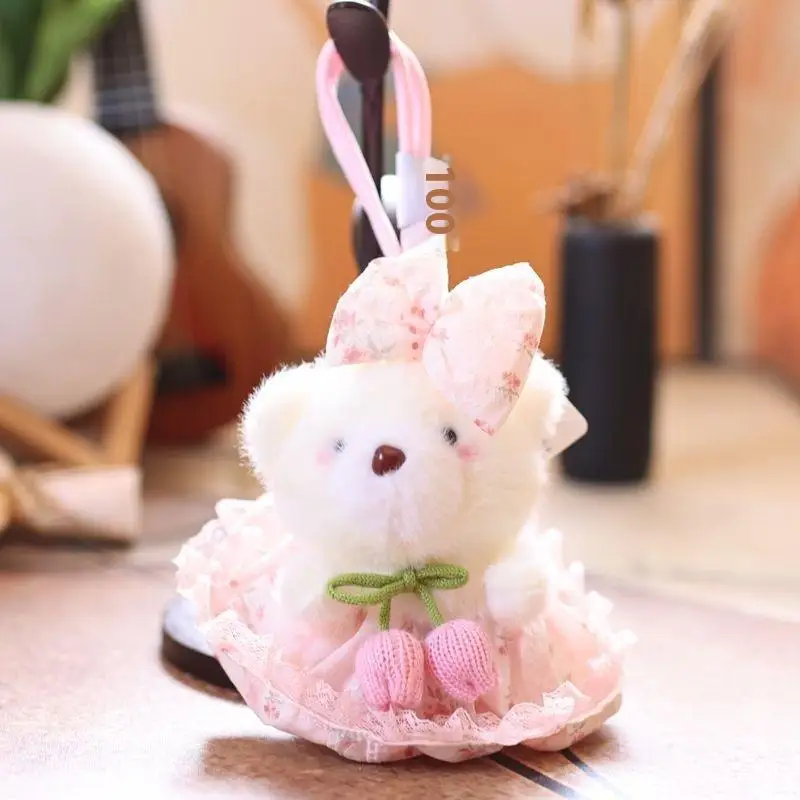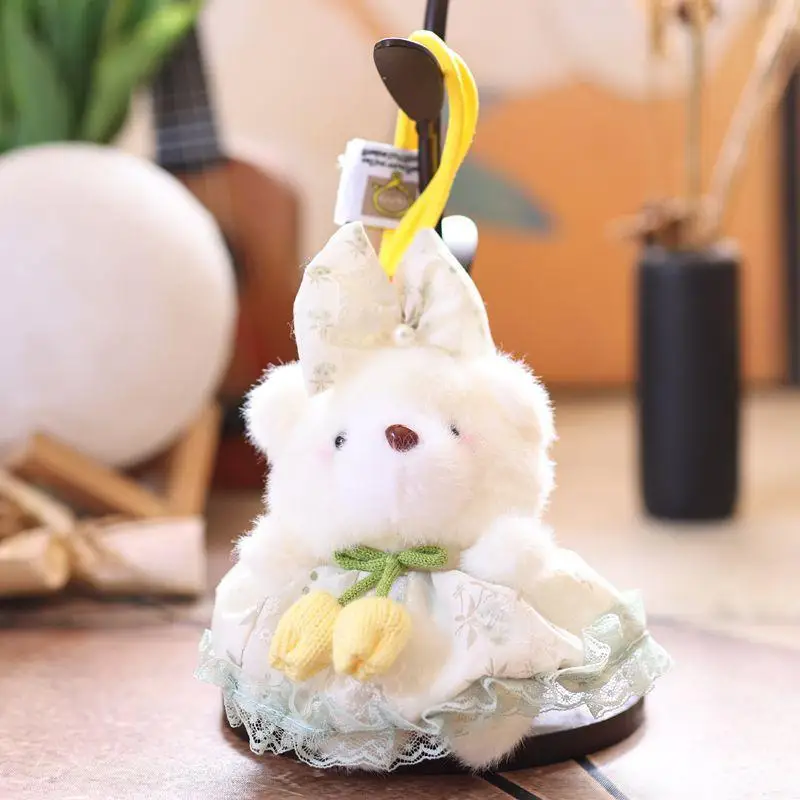 Imagine adding a touch of whimsy to your daily accessories with this charming plush bear keychain. The soft, fluffy surface invites you to touch and hold it, while its delightful design brings a sense of playfulness and warmth. Around 15cm in length, it fits perfectly on backpacks, purses, or keys, making it a fun and functional accessory. The bear’s delicate blush pink cheeks, tiny black eyes, and dark brown nose give it an irresistibly cute expression. Worn with a light blue floral bow and a dainty white lace dress, it exudes elegance and charm. Whether you’re gifting yourself or a loved one, this plush keychain creates a cheerful vibe that’s hard to resist and ensures your belongings stand out in style.