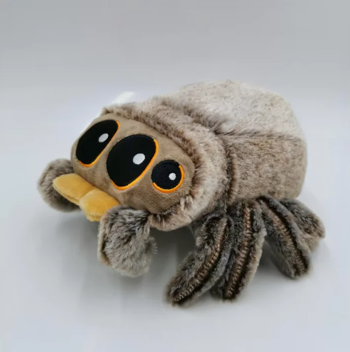 Imagine cuddling this adorable plush spider, crafted from soft beige plush material and filled with gentle PP cotton for a cozy, tactile experience. Its playful cartoon design features large expressive black eyes with white highlights, stitched with bright orange outlines, and a cute facial expression with a small yellow accent beneath the eyes. The integrated plush legs and smooth, seamless finish make it both charming and inviting. Perfect for children aged 6-12, this unisex, TV and movie-themed soft toy adds a delightful touch to playtime or as a comforting companion. Its plush texture, vibrant features, and friendly appearance make it an ideal gift to spark imagination and warmth.