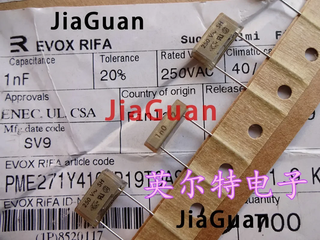 - Each capacitor has a capacitance of 0.001µF (1nF) and withstand voltage of 250VAC for dependable performance in high-voltage applications.